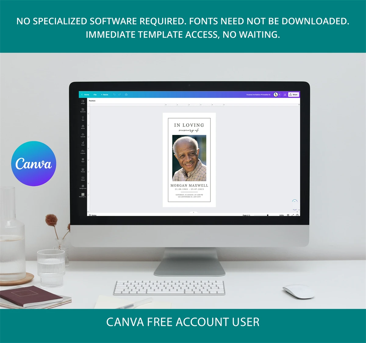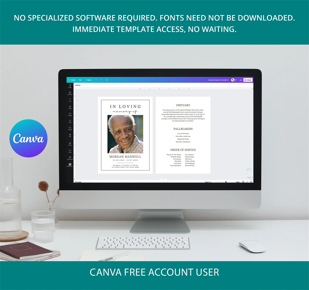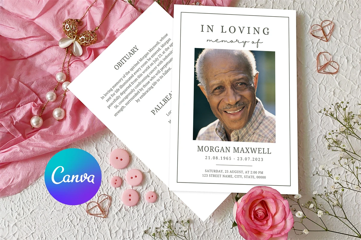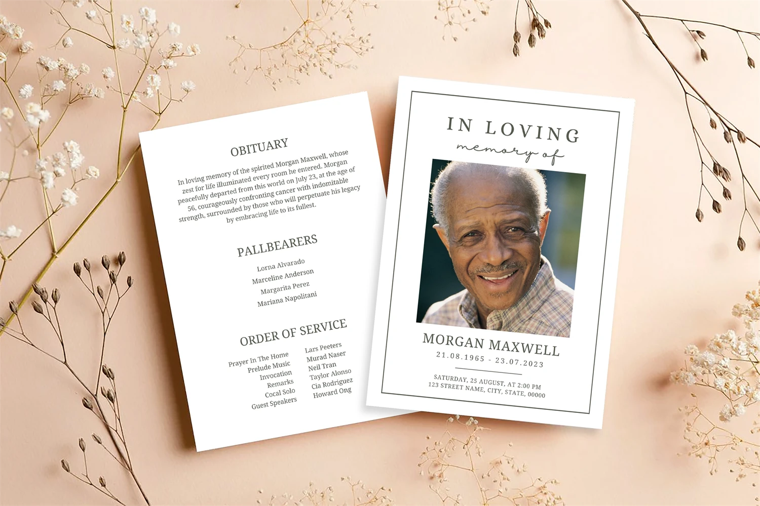 Minimalist Funeral Program Template, Simple Funeral Memorial Program, Funeral program, Funeral program template for man, Funeral announcement, Funeral program template canva, Funeral program with border.