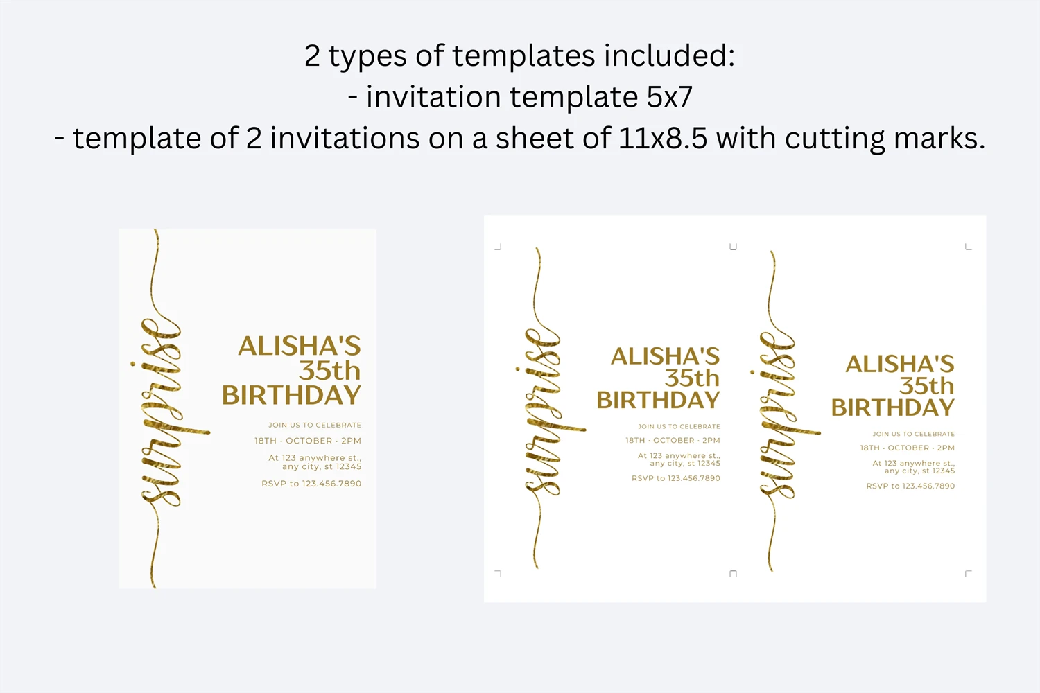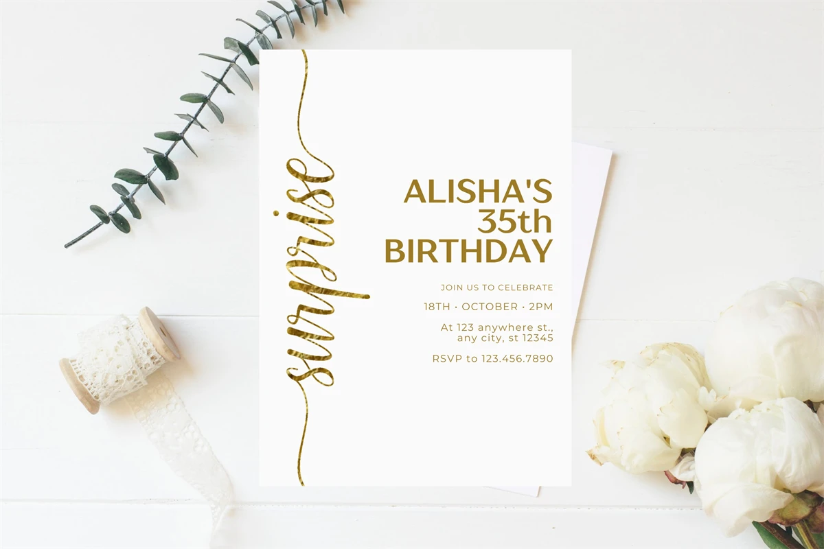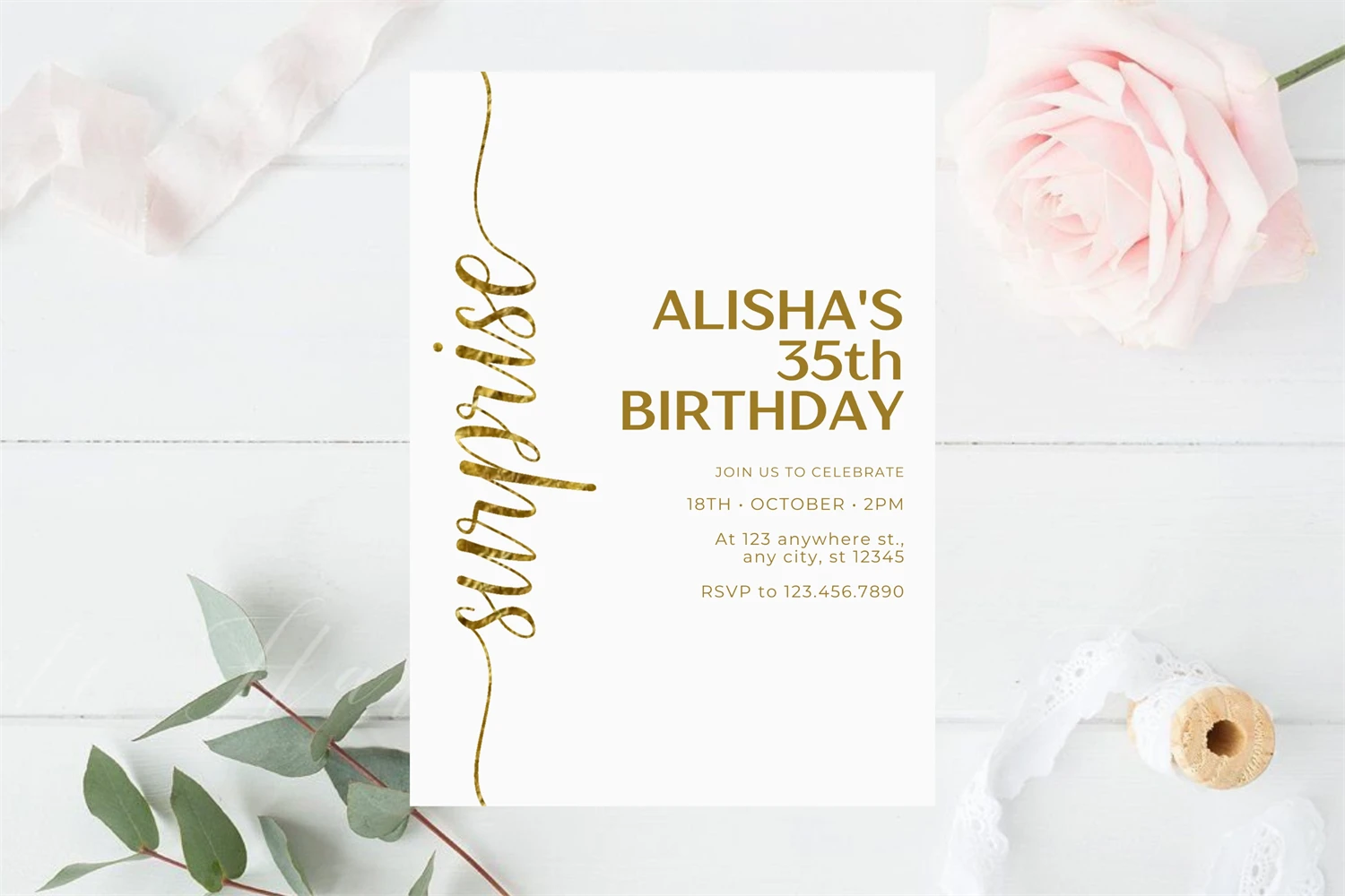 Introducing our Minimalist Golden Surprise Birthday Invitation!