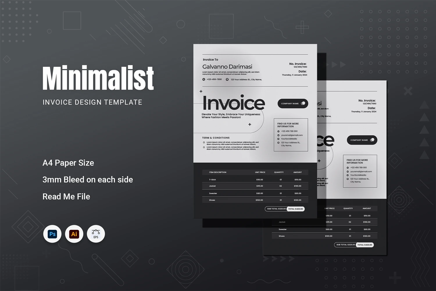 Each and every aspect holds significance within the realm of corporate affairs. Our invoice design template is poised to professionally showcase your brand. Your invoices will exude both style and practicality.