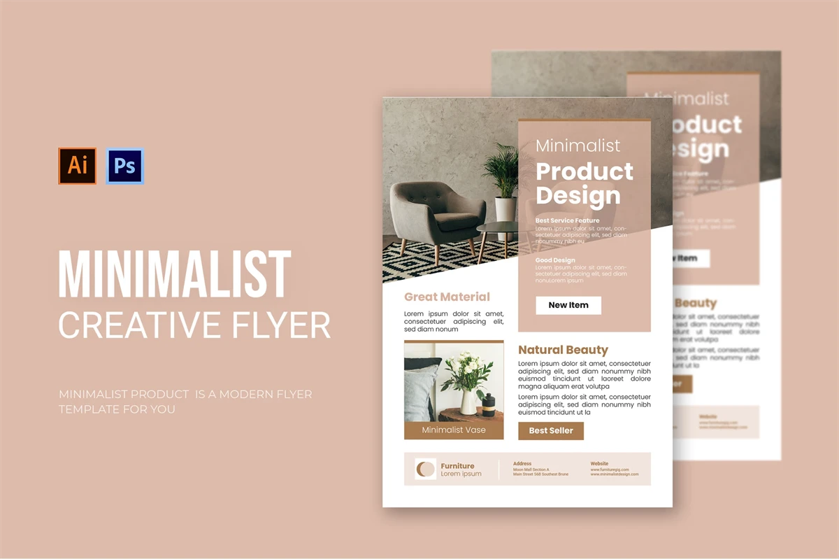 Minimalist Product Design - Flyer. This Flyer template is designed for your company's business needs. very clean and elegant, and also easily edited and adjusted to your liking