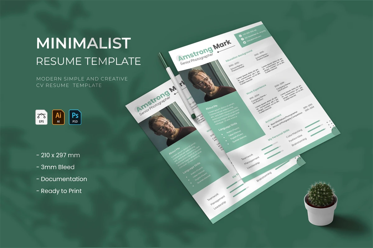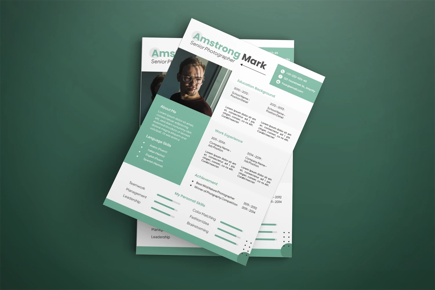 creative resume and cover letter template that will make your resume stand out from the hundreds of resumes employers get. It gives you the information you need, such as your name, contact information, social media links, education, experience, skills and interests. Also, it comes with three different color schemes.