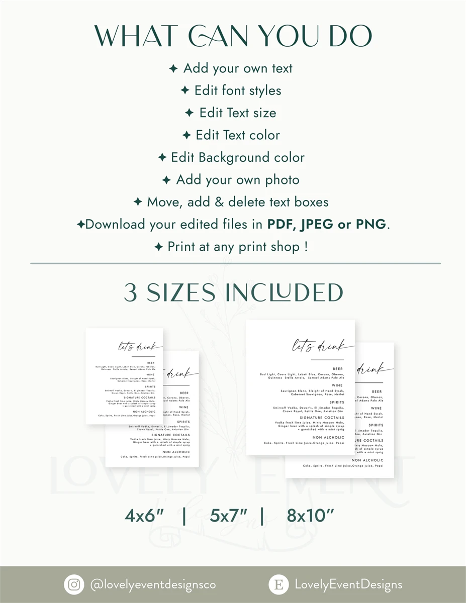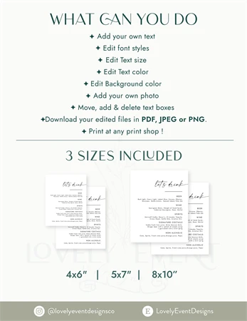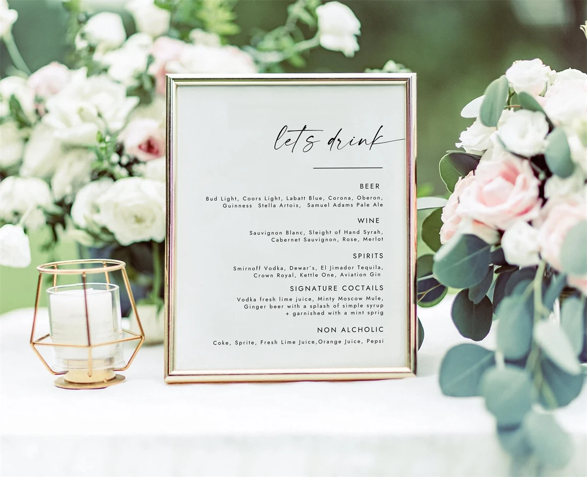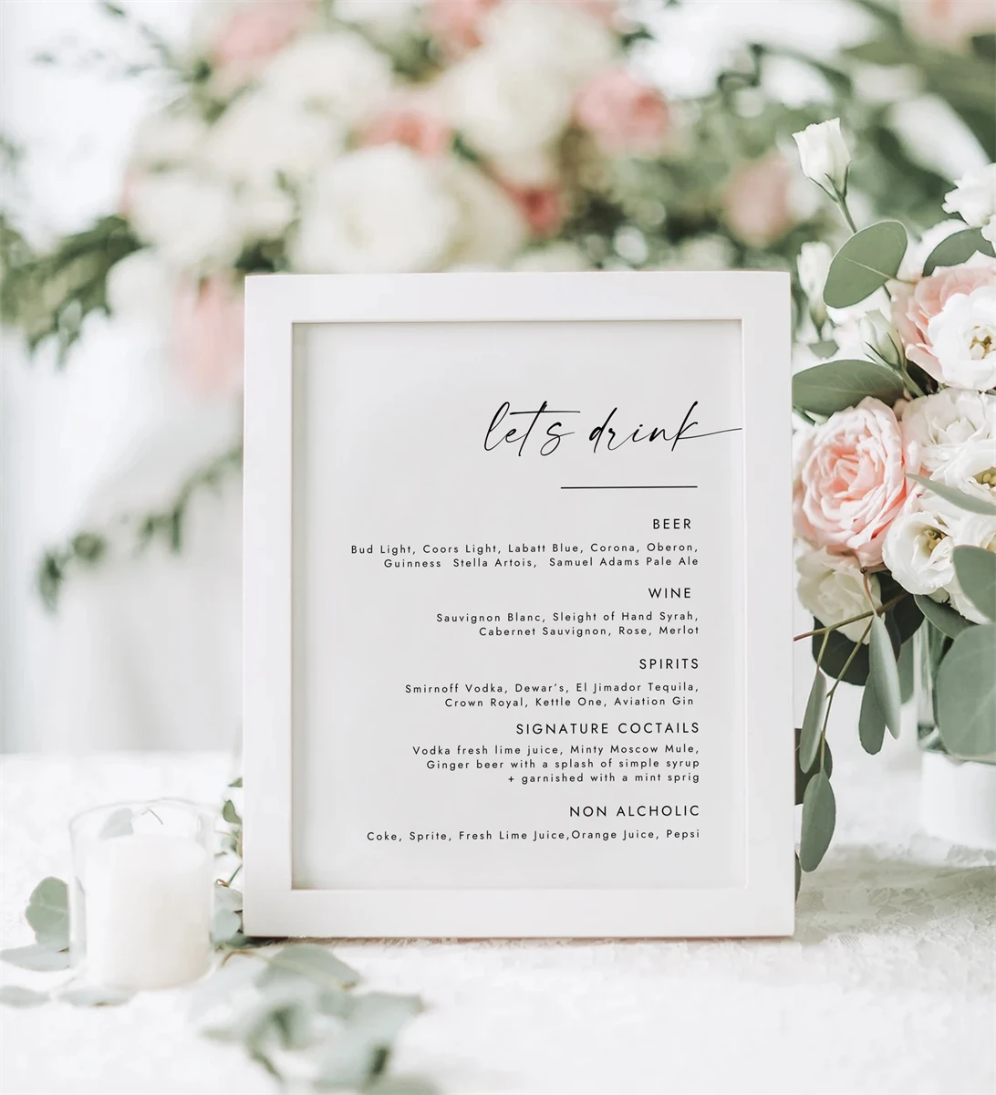 Minimalist Wedding Bar Menu Template, 8x10" Modern Bar Menu