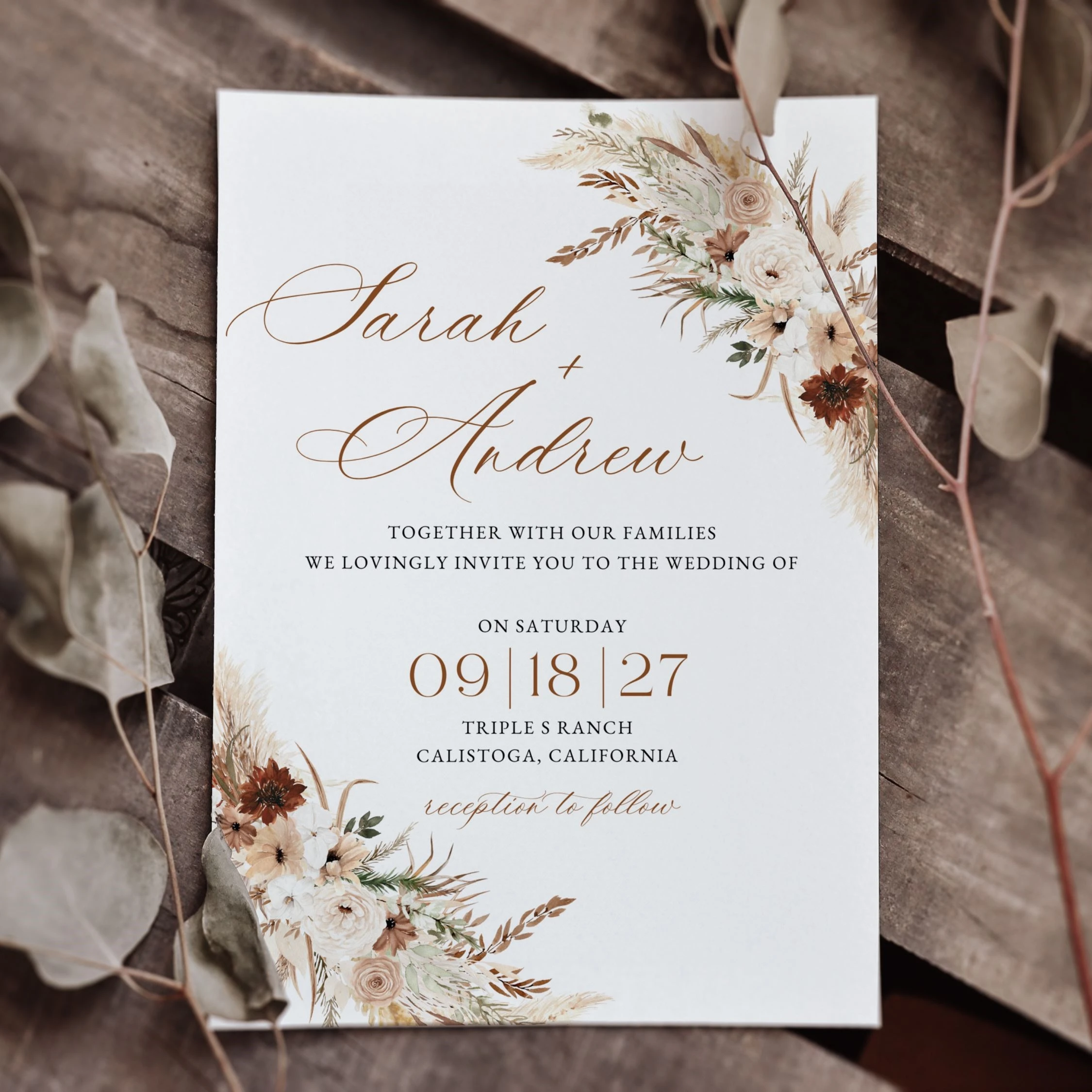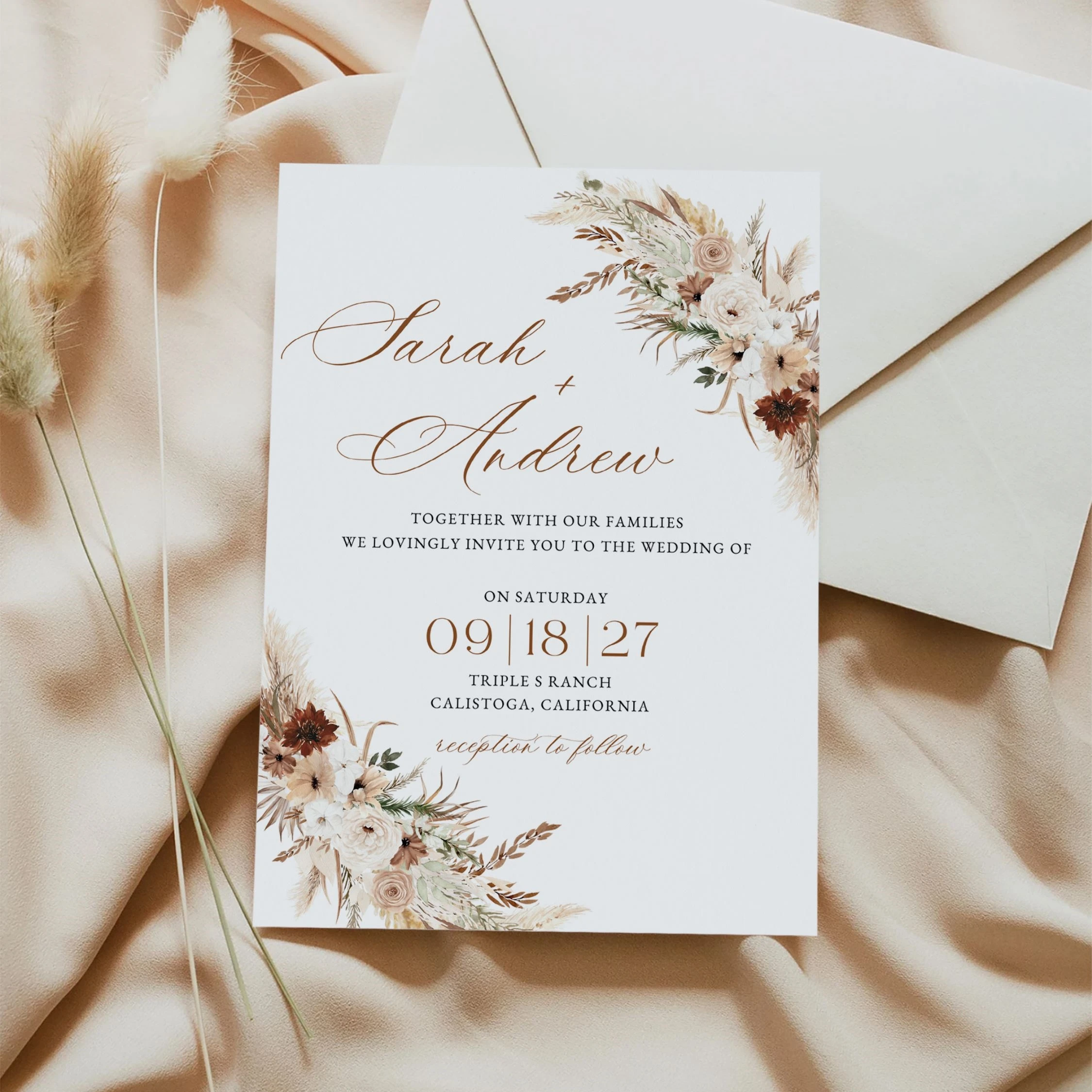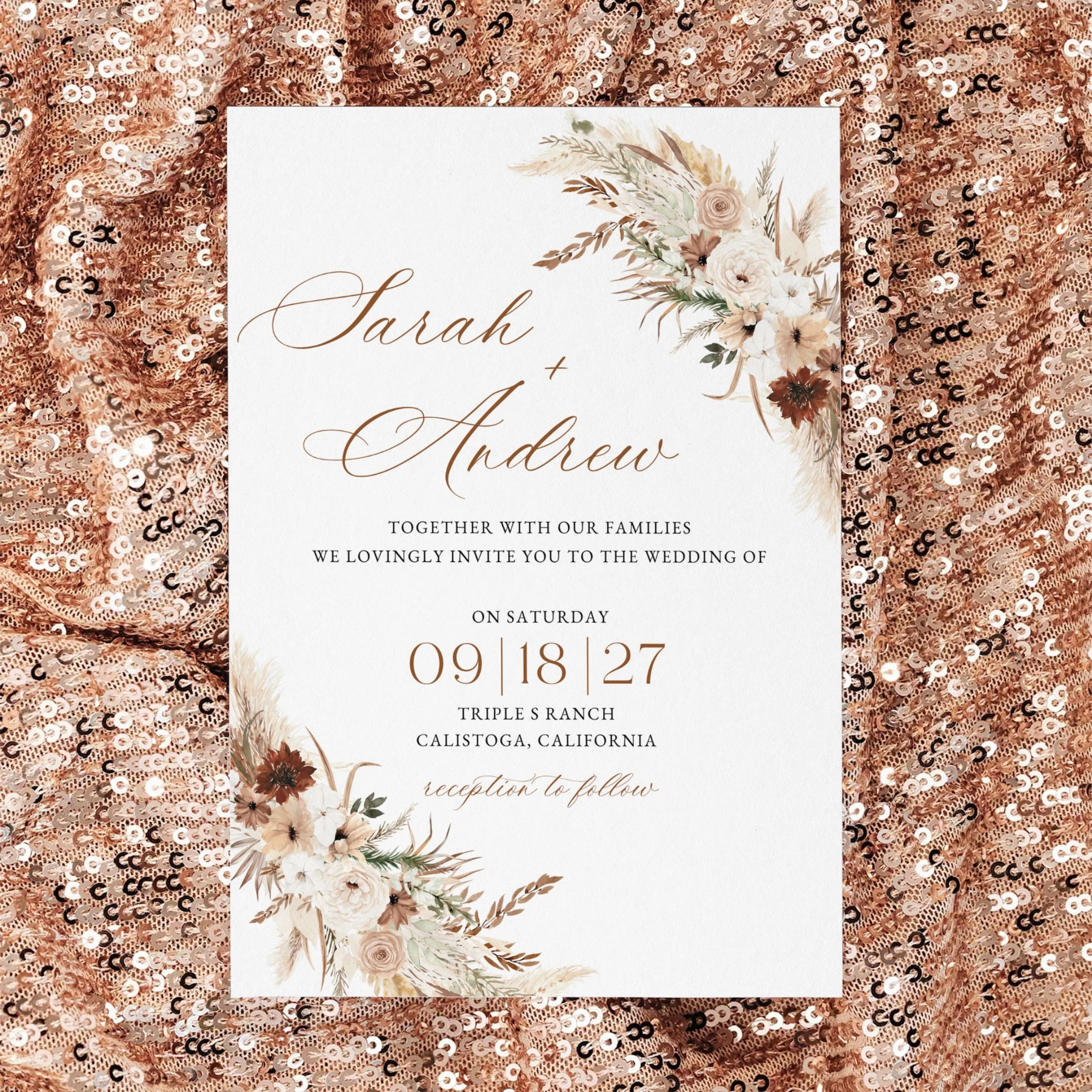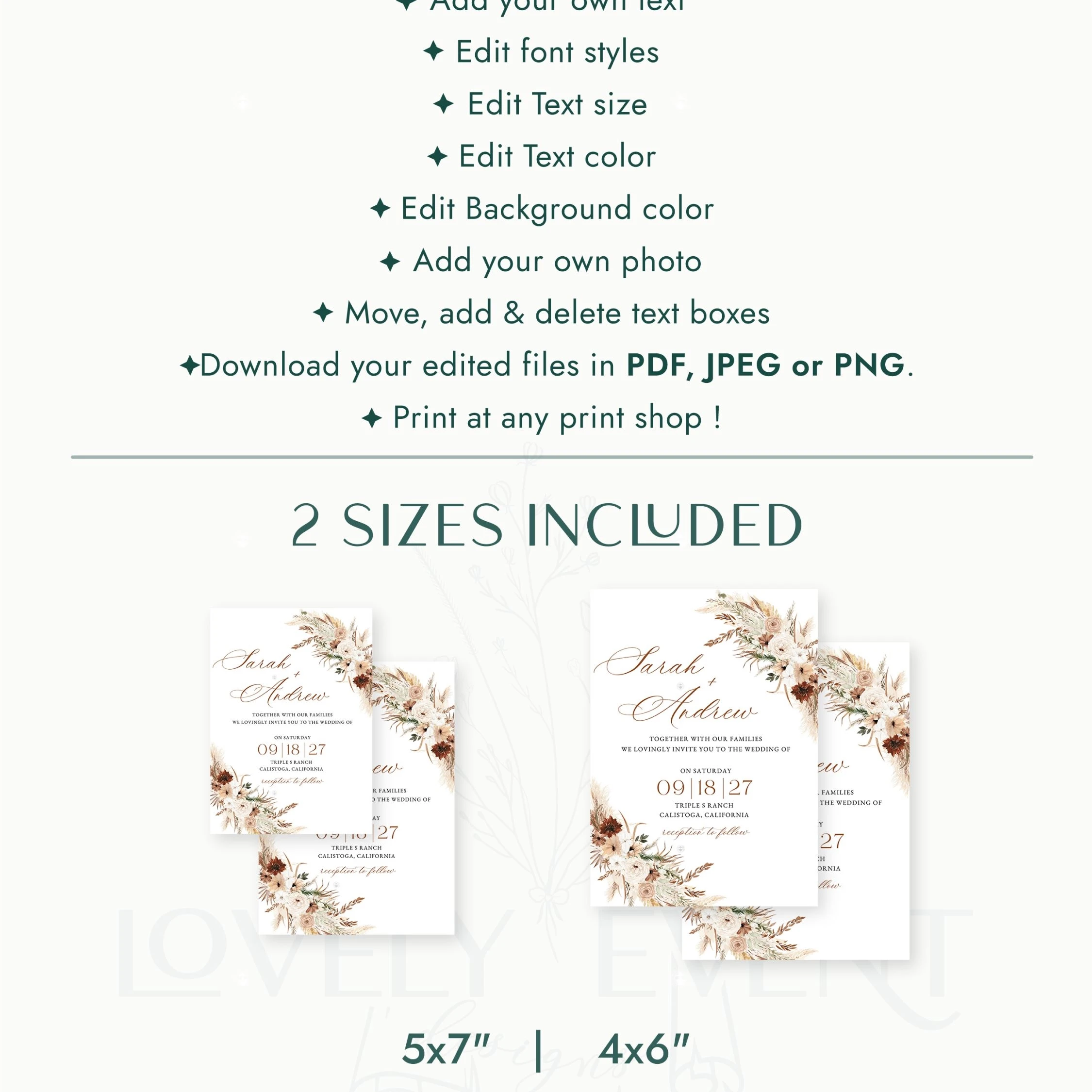 This file template has a modern aesthetic and is perfect for those who want to have a great wedding stationery. This template eliminates the need to contract a designer to create your wedding stationery.