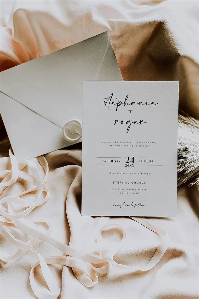 Minimalist Wedding Invitation Template, Modern Invitation Te