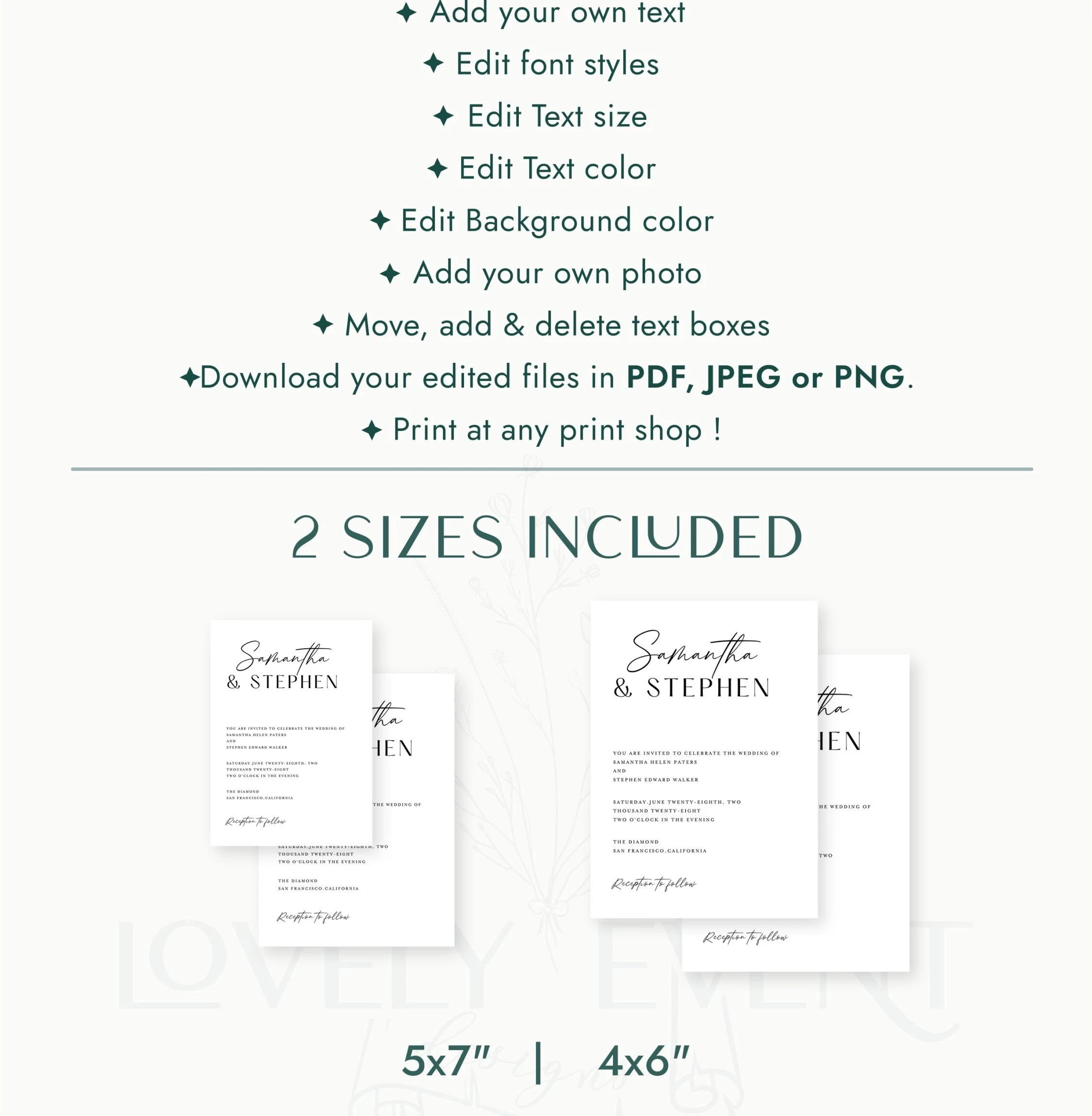 This file template has a modern aesthetic and is perfect for those who want to have a great wedding stationery. This template eliminates the need to contract a designer to create your wedding stationery.