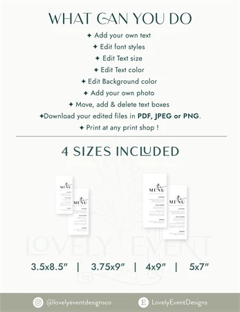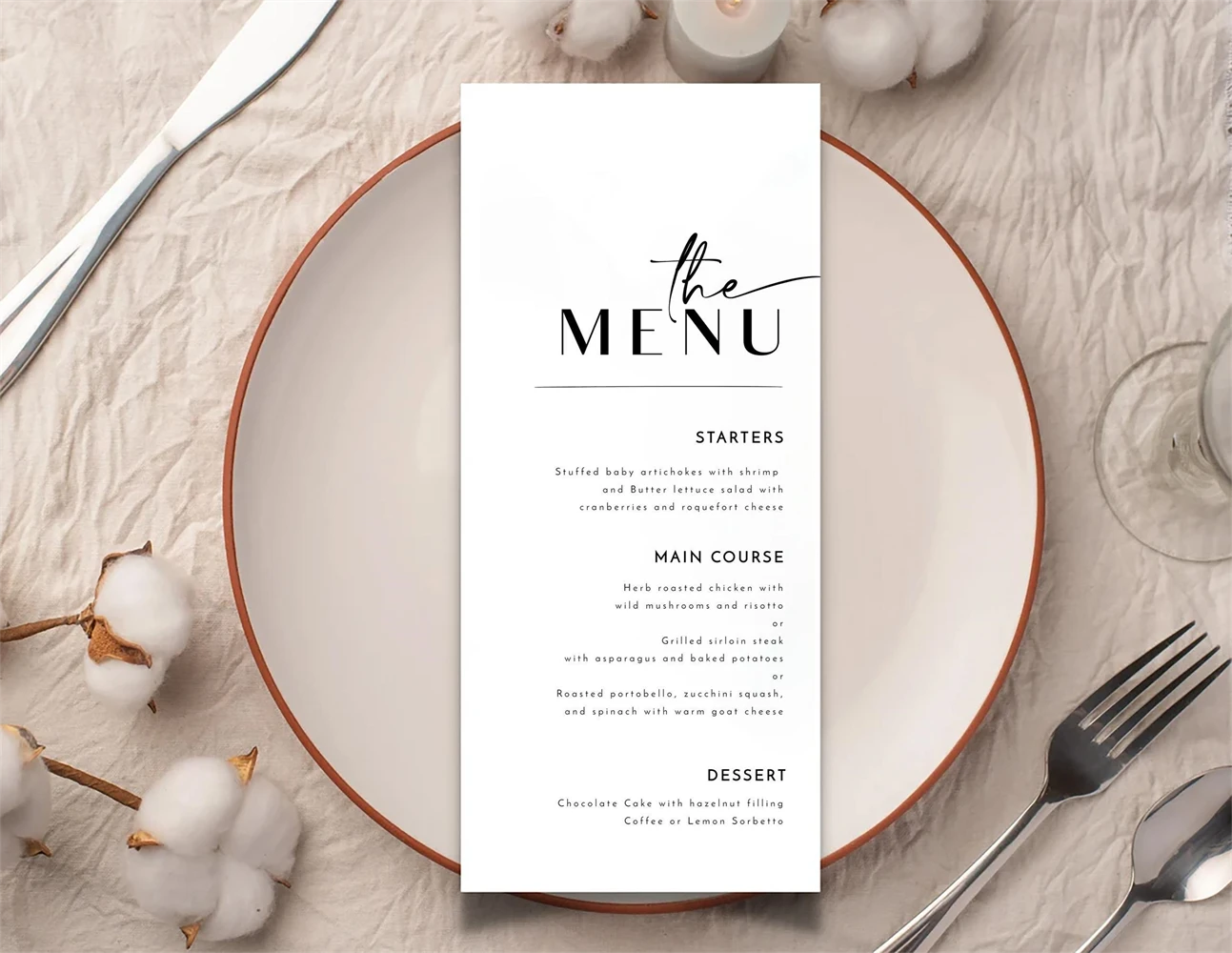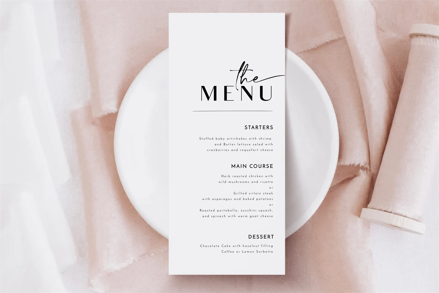 Minimalist Wedding Menu Template, Modern Script Wedding Dinn