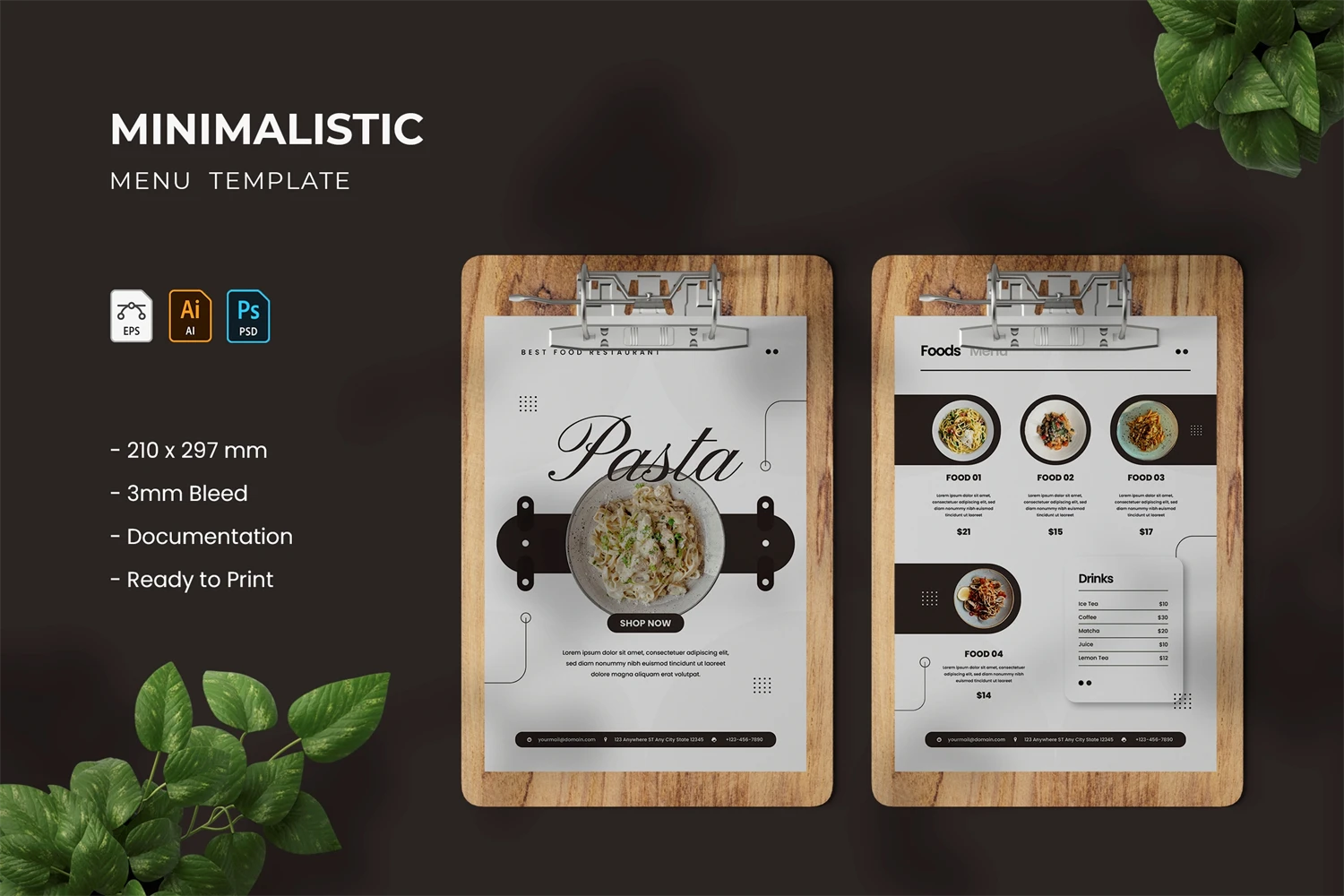 Menu Restaurant Template is a menu template for people who sell, business, or run a food-related business. The layout makes it easy to find the menu you want. Too many choices can make customers feel overwhelmed, so its better to limit the number of choices, colors, and other design elements so that customers can easily scan and order items.