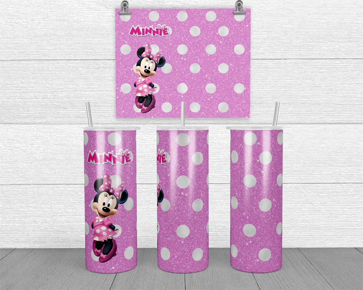 Minnie Mouse Pink Glitter White Dots Tumbler Wrap