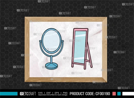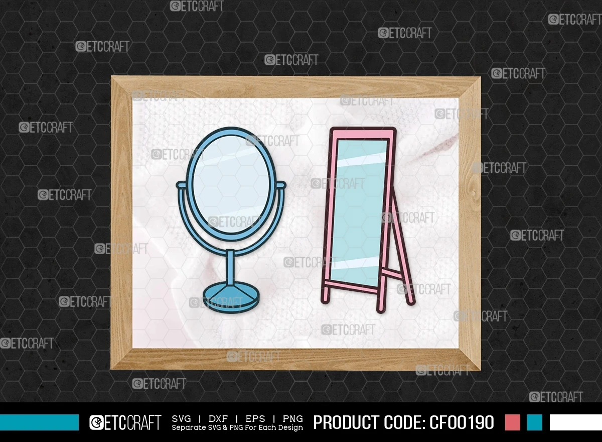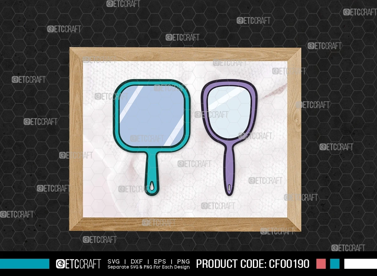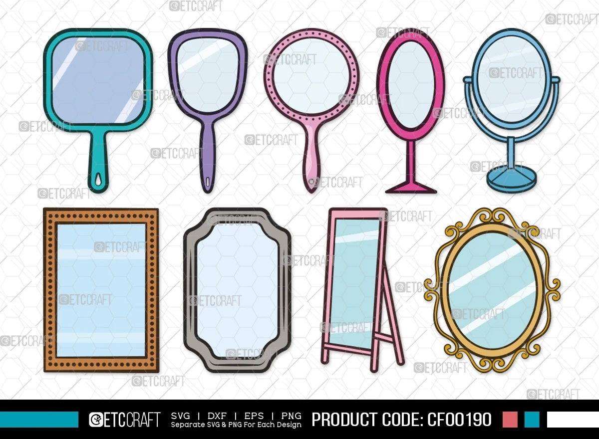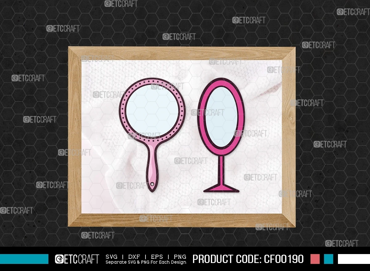 Enhance your design projects with our Mirror Clipart Fashion Cosmetic Compact Hand Mirror Frame SVG Cut File Bundle. This versatile bundle offers a variety of mirror-related designs, perfect for adding a touch of elegance and style to your creations.