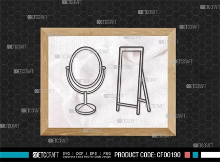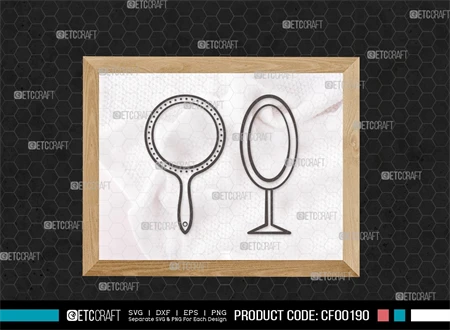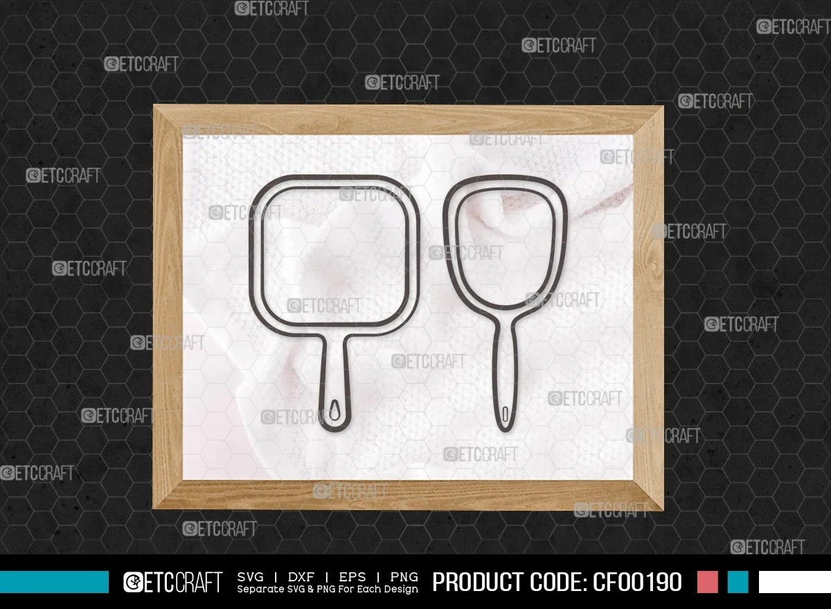 Upgrade your design game with our Mirror Outline Fashion Cosmetic Compact Hand Mirror Frame SVG Cut File Bundle. Download now to add a touch of sophistication and style to your creative projects!