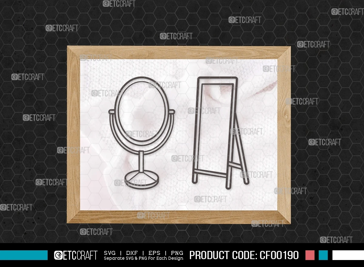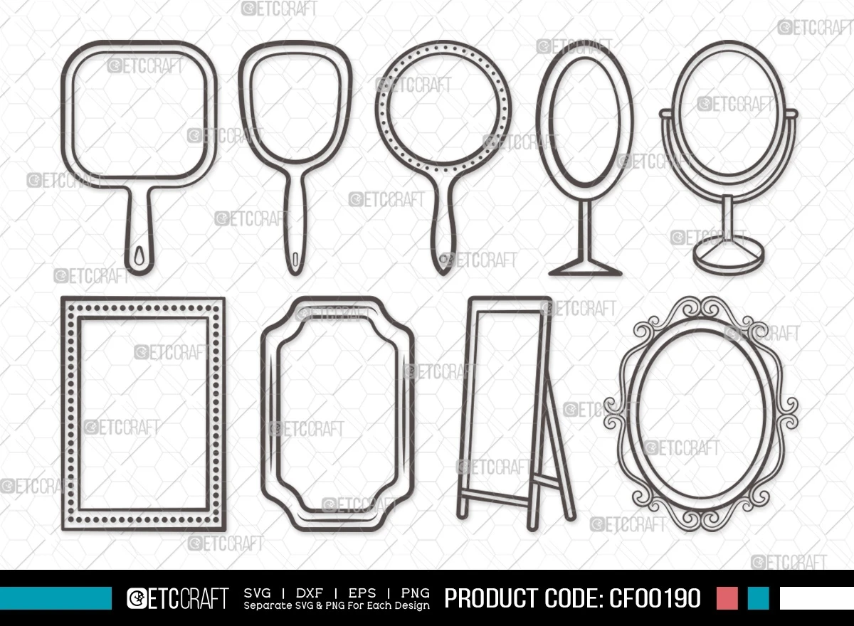 Enhance your design projects with our Mirror Outline Fashion Cosmetic Compact Hand Mirror Frame SVG Cut File Bundle. This versatile bundle offers a variety of mirror-related designs in outline form, perfect for adding a touch of elegance and style to your creations.
