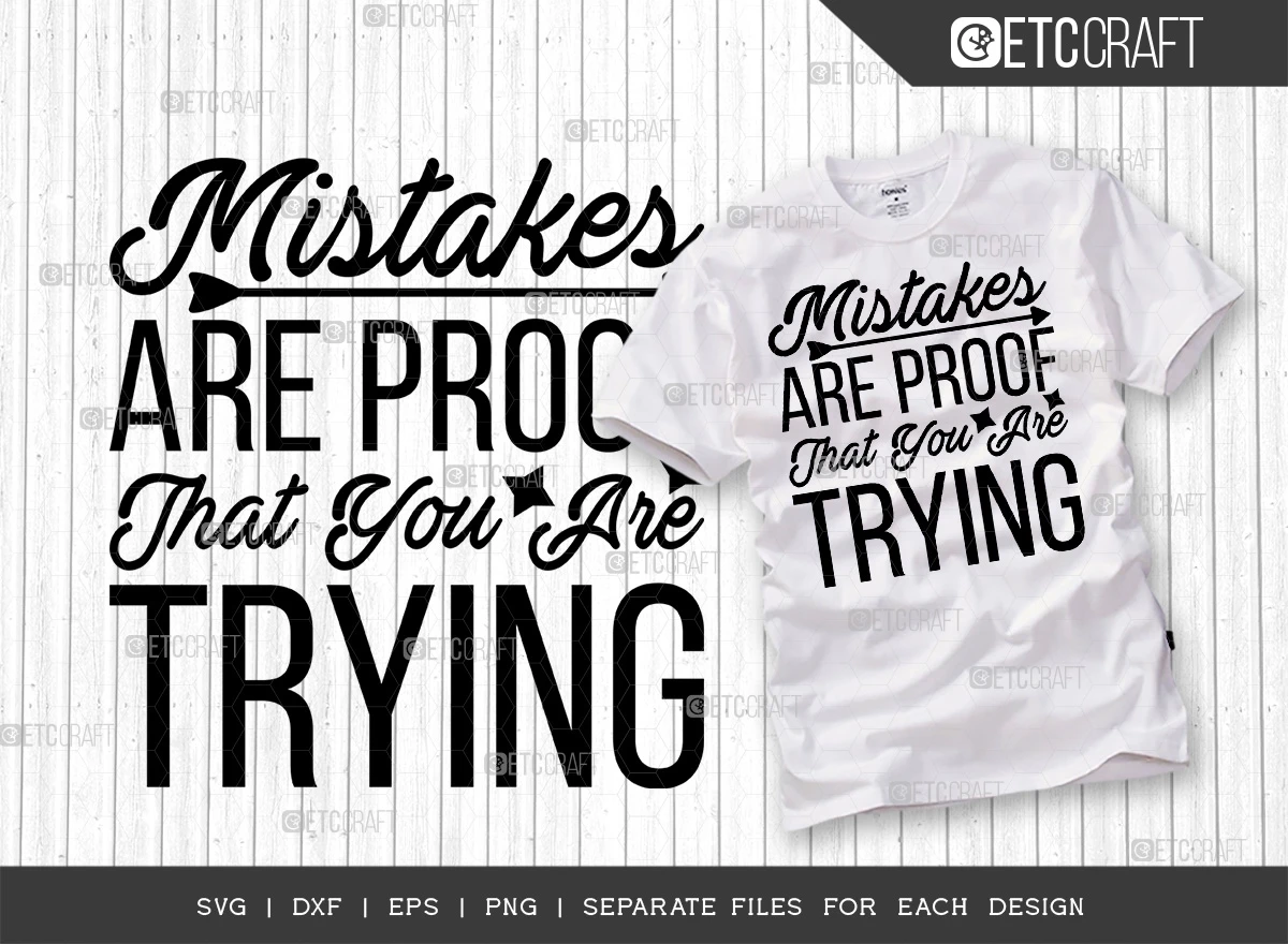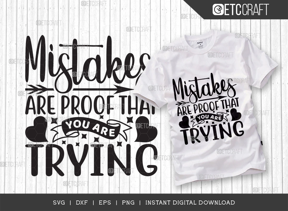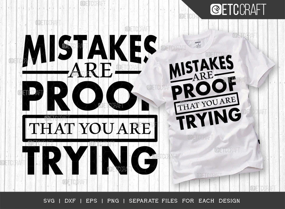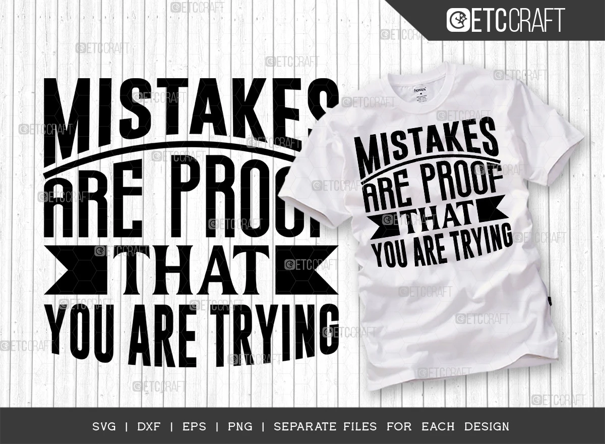 These Mistakes Are Proof That You Are Trying SVG Bundle is the perfect way to motivate yourself and others to keep trying, even when things get tough. The bundle includes 5 different SVG files, each with a different variation of the inspirational quote "Mistakes are proof that you are trying." You can use these files to create custom t-shirts, mugs, wall art, and more.