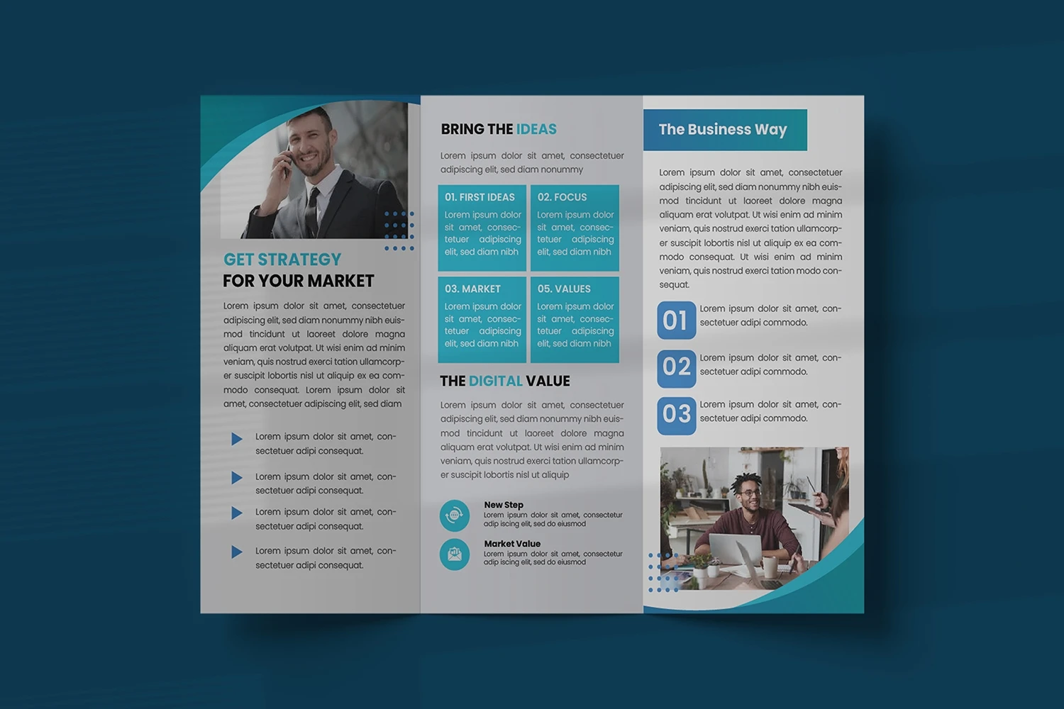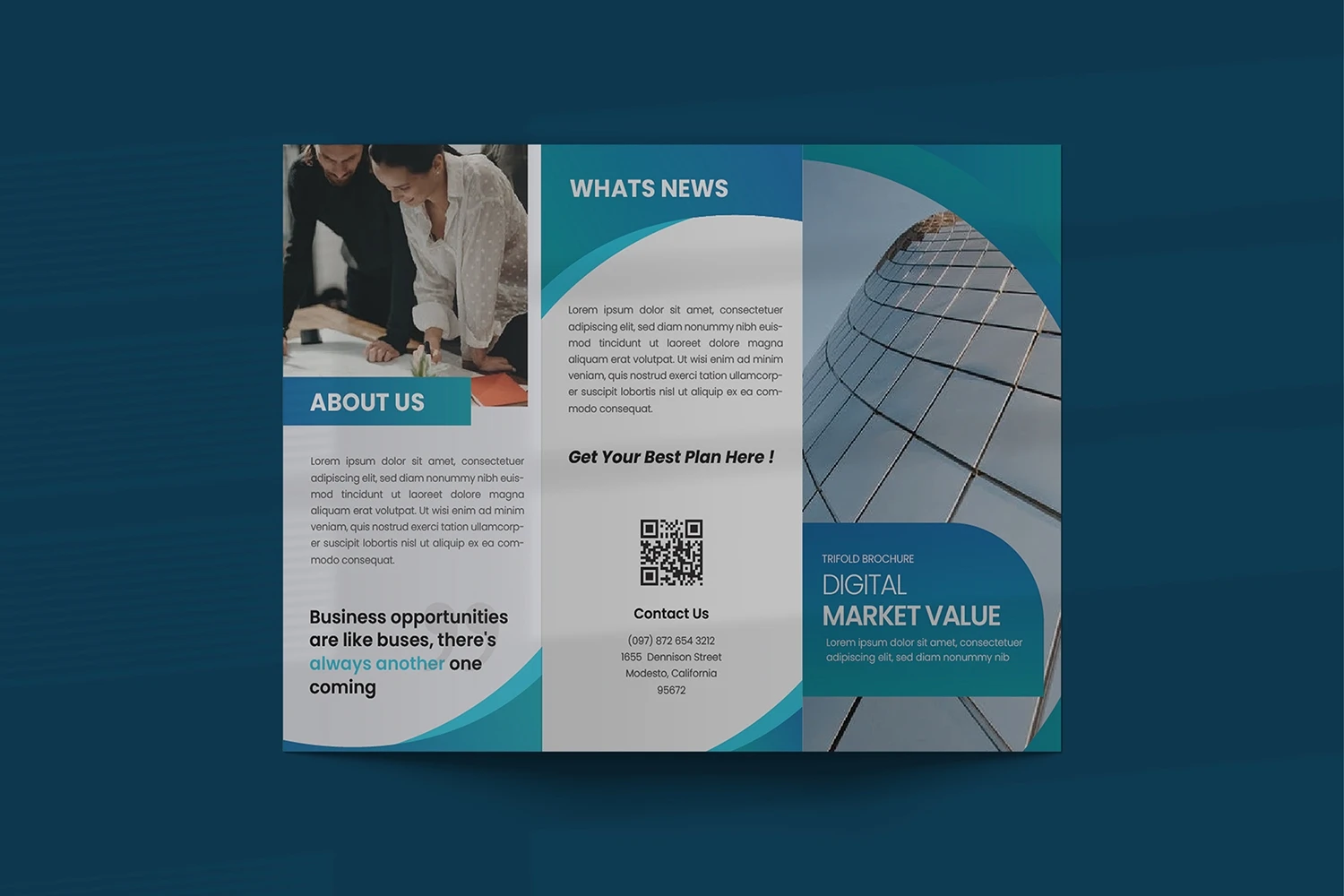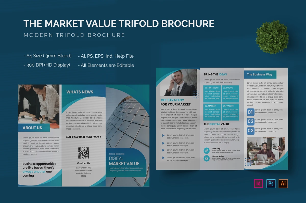 Mobile Market - Trifold Brochure A trifold brochure is a type of corporate business flyer with a clean, simple, and professional style that is useful for promoting the goals of a project. This Brochure Project Is Perfect for Agency, Fashion, Creative, Magazine, Retail, Freelance, Business, and More! Dont worry, its very easy to be edited.
