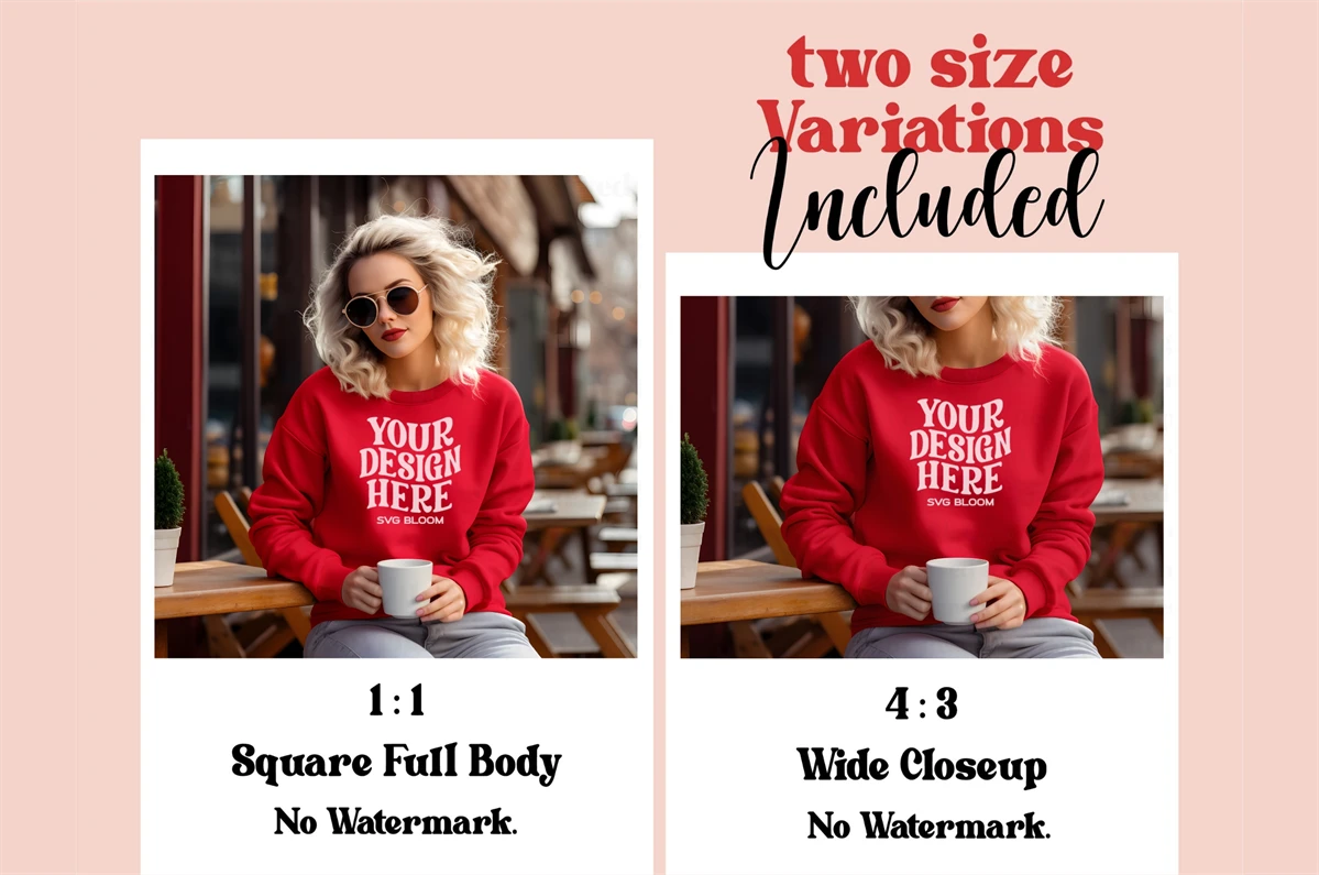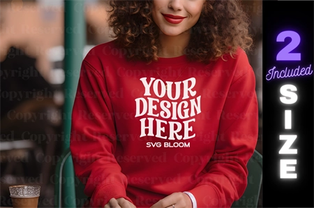Red Gildan 18000 Sweatshirt Mockup Winter Boho Woman Sweater Mockup Stylish Mockup Easy To Use Mockup Stunning Model