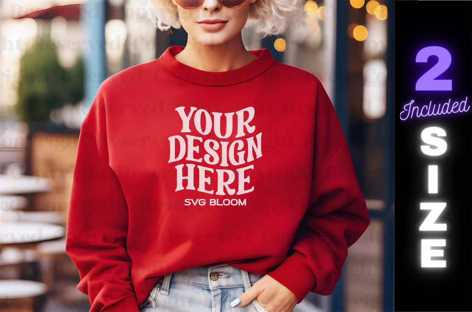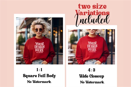 Red Gildan 18000 Sweatshirt Mockup Winter Boho Woman Sweater Mockup Stylish Mockup Easy To Use Mockup Stunning Model