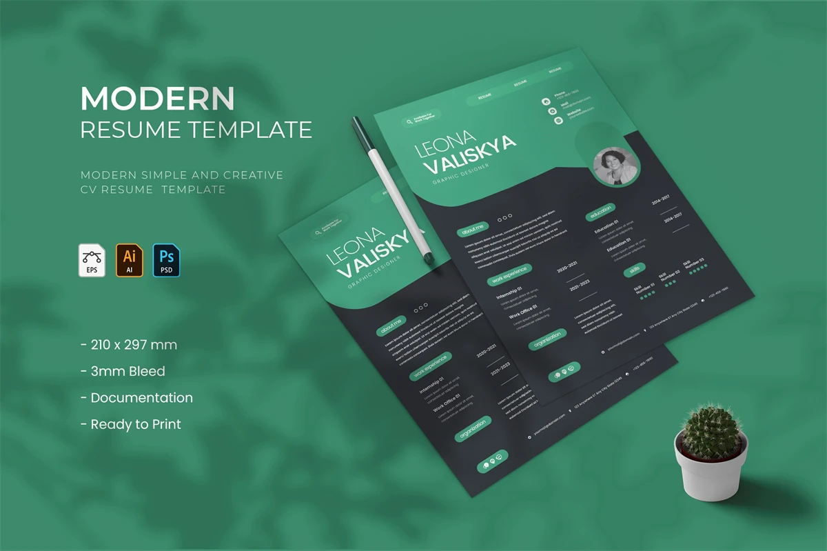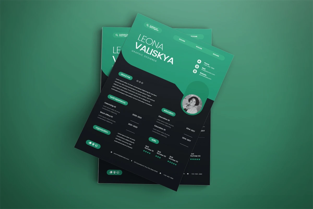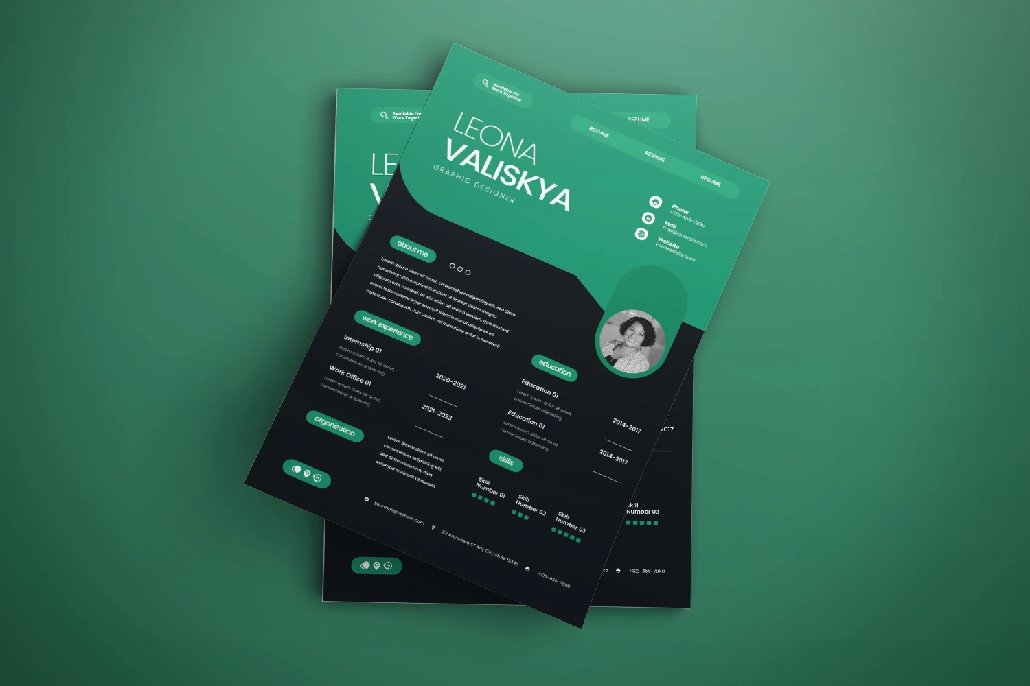 creative resume and cover letter template that will make your resume stand out from the hundreds of resumes employers get. It gives you the information you need, such as your name, contact information, social media links, education, experience, skills and interests. Also, it comes with three different color schemes.