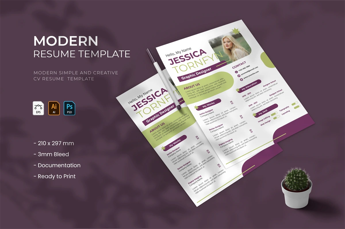creative resume and cover letter template that will make your resume stand out from the hundreds of resumes employers get. It gives you the information you need, such as your name, contact information, social media links, education, experience, skills and interests. Also, it comes with three different color schemes.