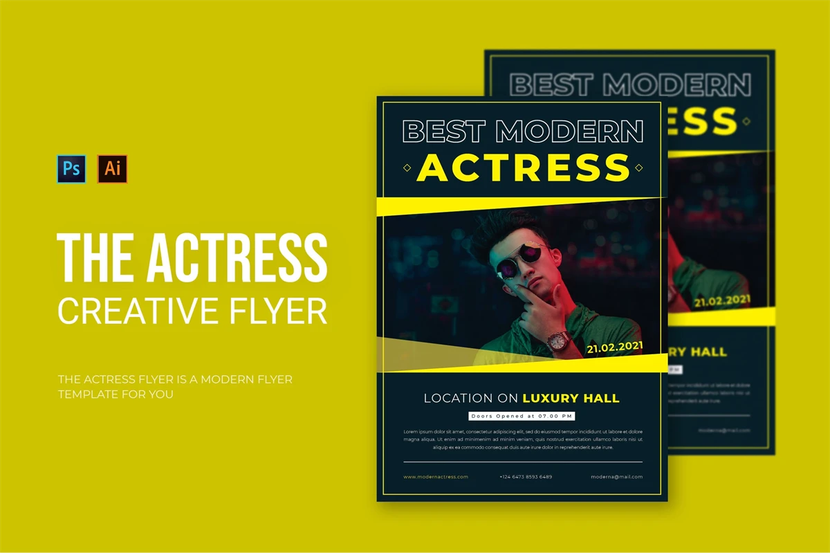 Modern Actrees - Flyer. This Flyer template is designed for your company's business needs. very clean and elegant, and also easily edited and adjusted to your liking