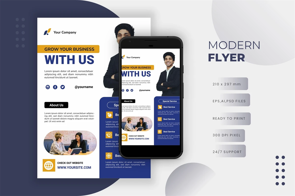 A sleek and simple flyer that may be used for business or pleasure. It may be easily modified, making it perfect for use in any business endeavor. Basically, you just need to update the text and visuals. In other words, you may alter it to your satisfaction.