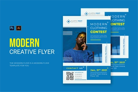 Modern Clothing - Flyer. This Flyer template is designed for your company's business needs. very clean and elegant, and also easily edited and adjusted to your liking