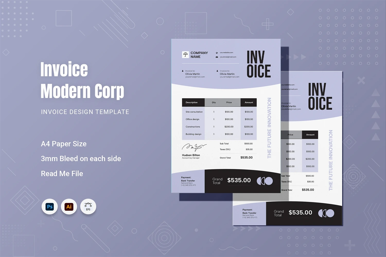 Professional invoice samples of the highest quality for any business or individual use. This invoice will help you in your business to save time, organize your product data, and identify your customers and items. It is designed for individual and corporate use. This printable stationery pack includes an invoice template designed to increase the credibility of your business. They're quick to customize, as all you've got to do is add your business logo to get a letterhead or envelope you can use immediately.
