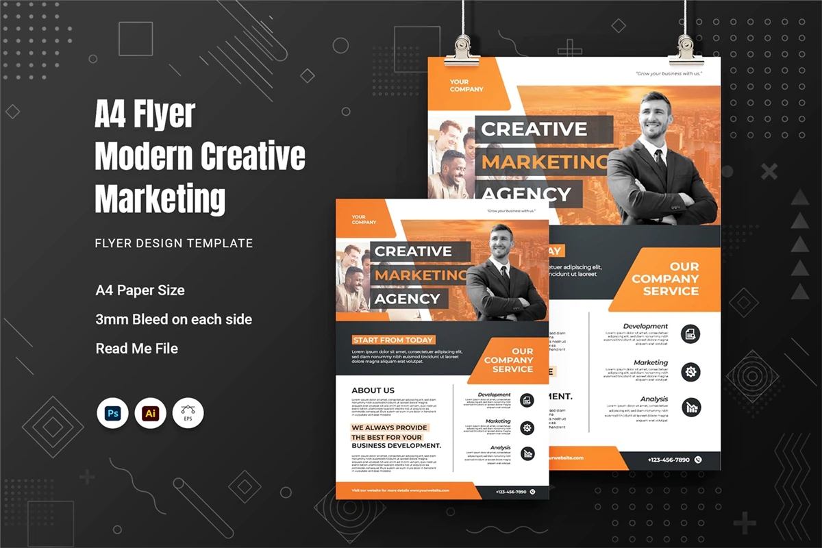 Here is our business flyer template! This is a creative and corporate-style flyer template - Get it now! great Flyer template for All business and personal needs. All elements on this template are editable from Ai & EPS tools, input your content, replace your image with a placeholder, change the color, and, all templates include professional layouts and present your template to the world, Cheers..... :)