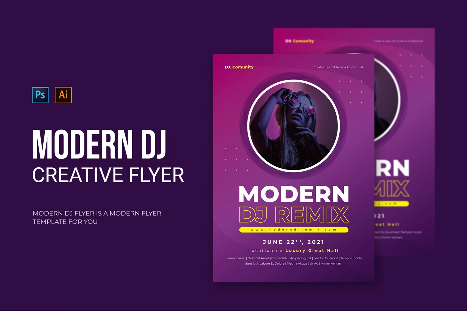 Modern DJ - Flyer. This Flyer template is designed for your company's business needs. very clean and elegant, and also easily edited and adjusted to your liking