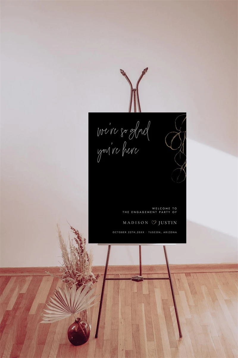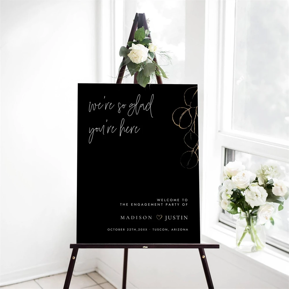 Modern Engagement Welcome Sign, Black We're So Glad,Canva