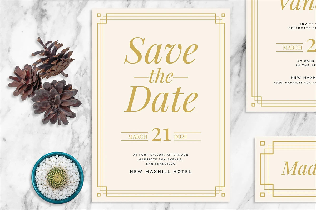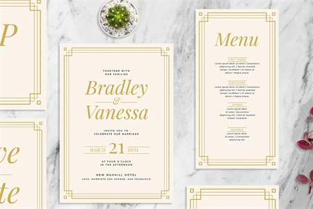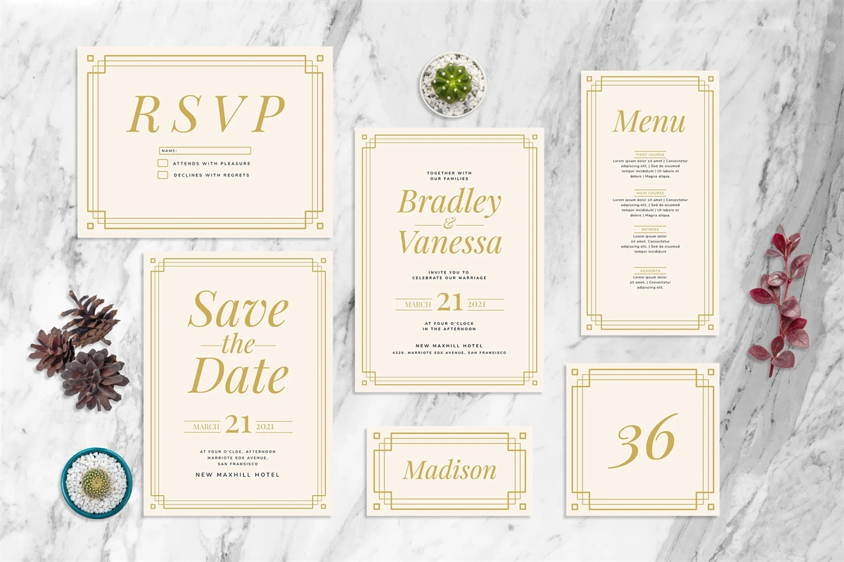 Modern Golden Retangle Border - Wedding Invitation, is an invitation card leaflet, poster design, etc. Simple and very elegant You can easily edit & adjust each design because each layer such as text, images and shapes are well organized and highlighted.