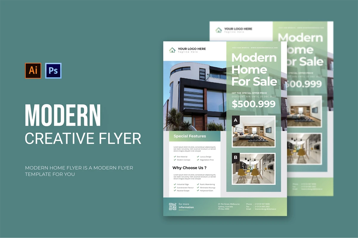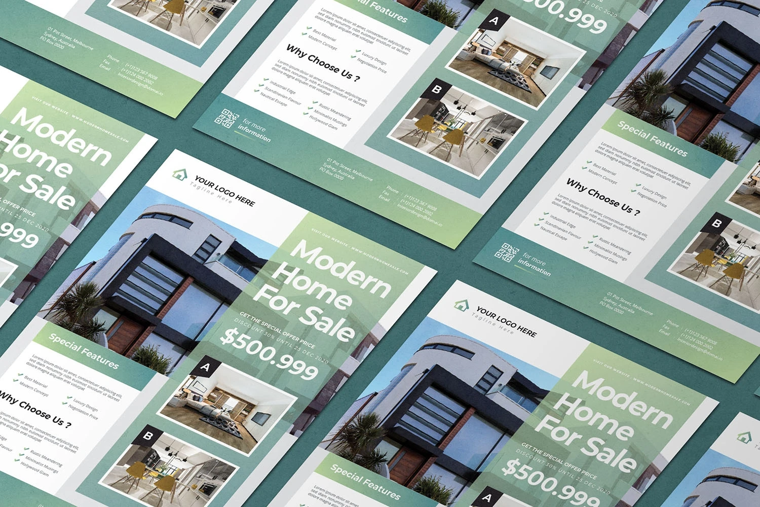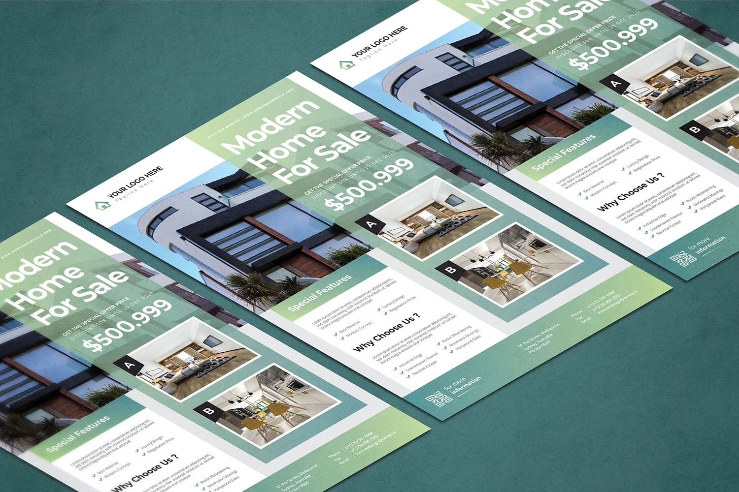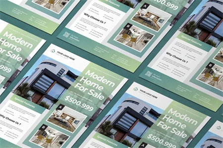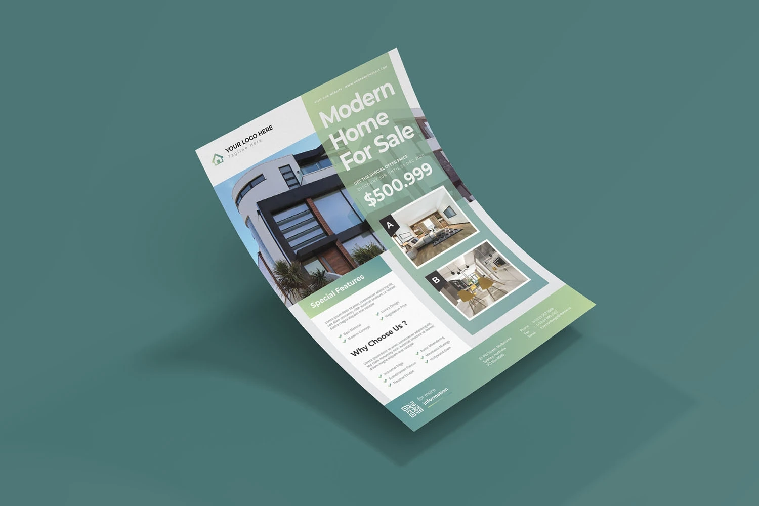 Modern Home - Flyer. This Flyer template is designed for your company's business needs. very clean and elegant, and also easily edited and adjusted to your liking