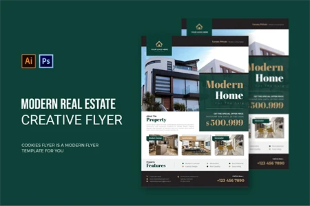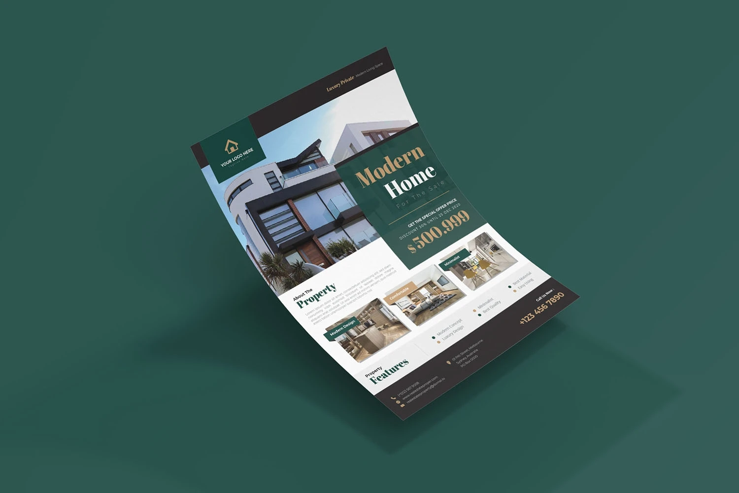 Modern Real Estate - Flyer. This Flyer template is designed for your company's business needs. very clean and elegant, and also easily edited and adjusted to your liking