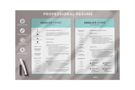 2 Page Modern Resume template for iWork Pages (.pages format )