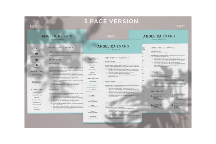 3 Page Modern Resume template for iWork Pages (.pages format )