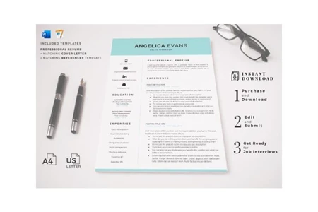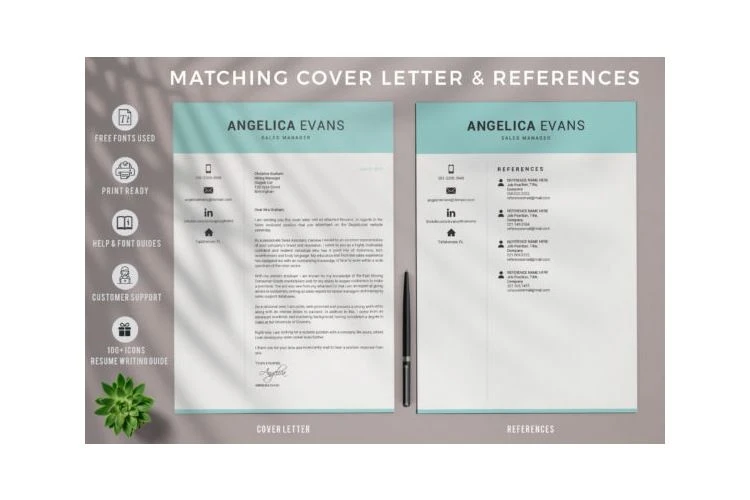 Modern & Professional Resume Template for Mac Pages & Ms Word. 1, 2 & 3 Page Resume Template + Cover Letter + References + Resume Writing guide + icons