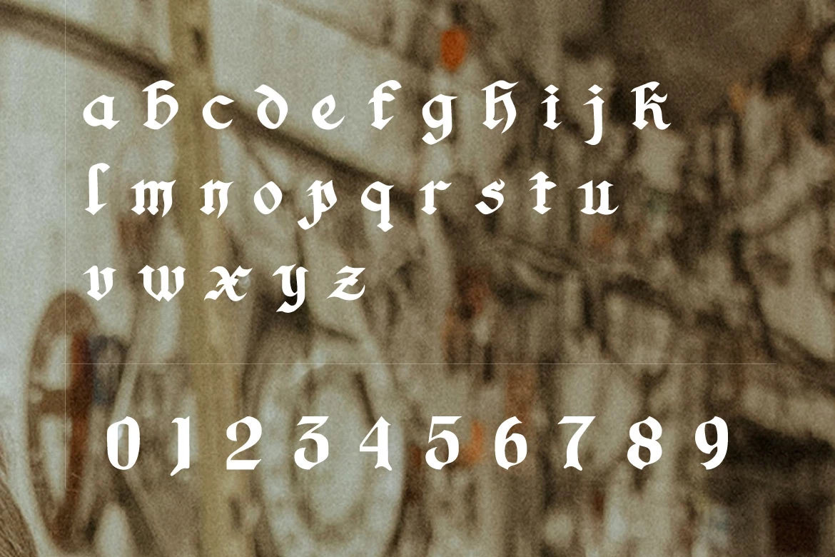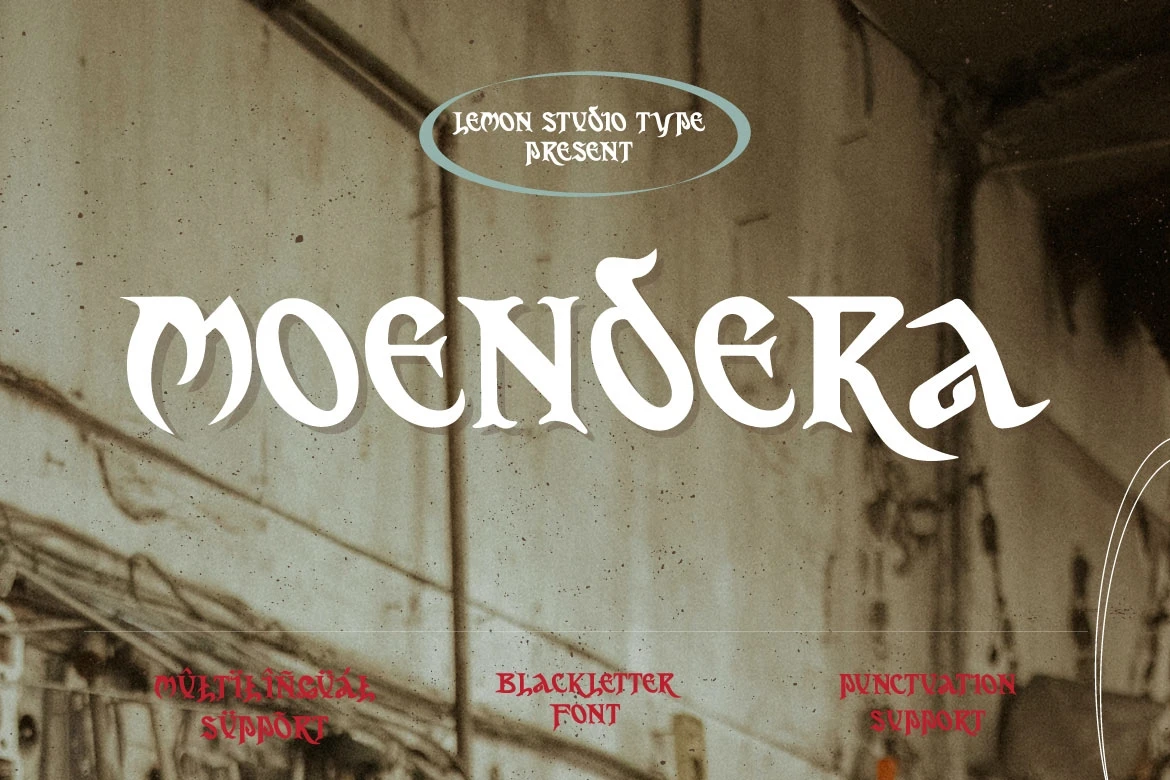 MOENDERA is a gothic and blackletter font. Add this font to your favorite creative ideas and notice how it makes them stand out!