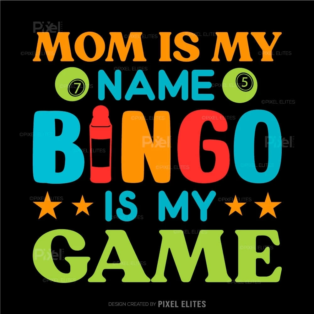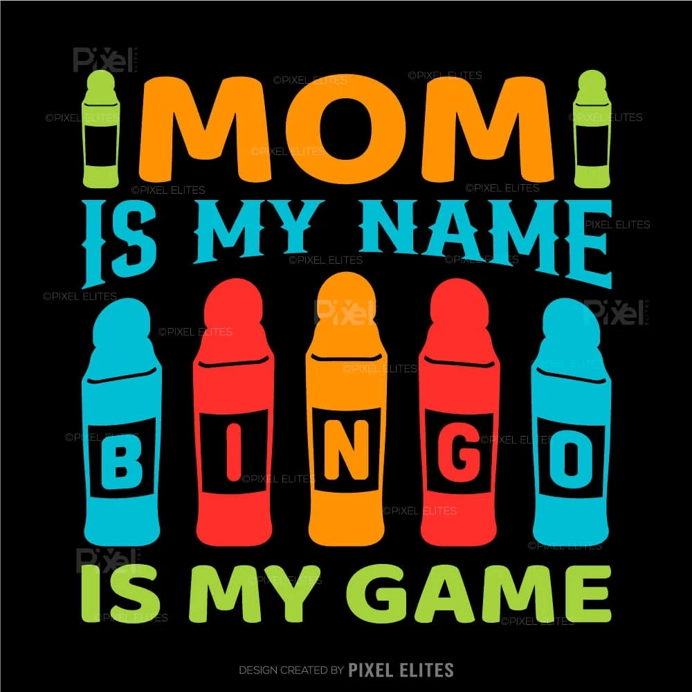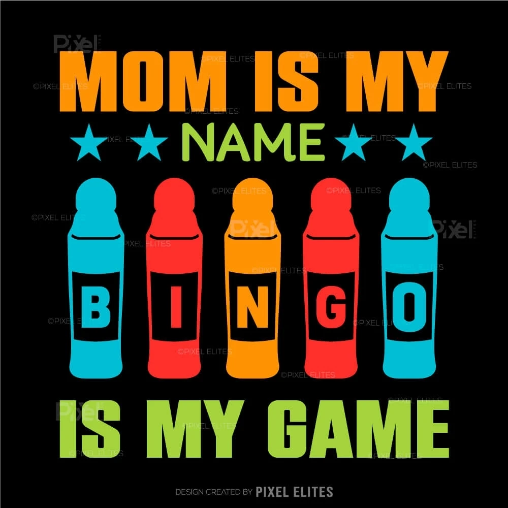 - Mom Is My Name Bingo Is My Game, Fun DIY Shirt Design, Bingo Quote T-Shirt, Custom Mothers Day Gifts, DIY Bingo Crafts, SVG Files for Cricut and Silhouette, Humorous Mom Apparel, Personalized Bingo Clothing, Creative Game Night Projects, Bingo Enthusiast Merchandise