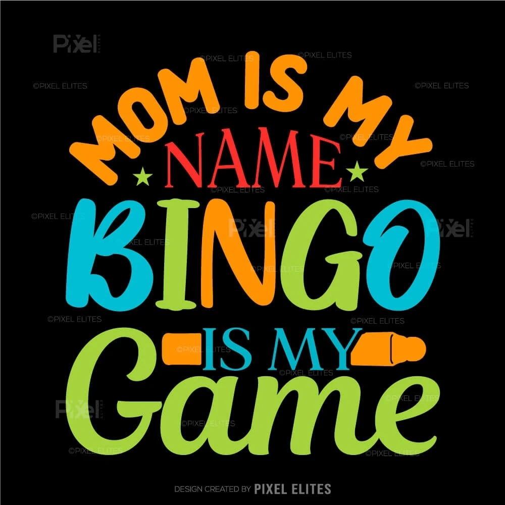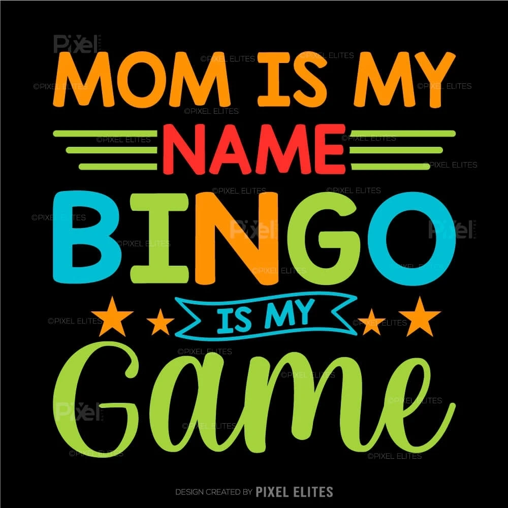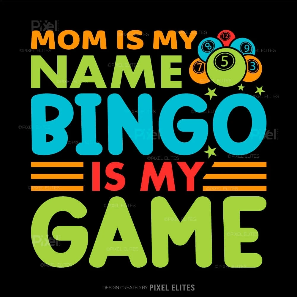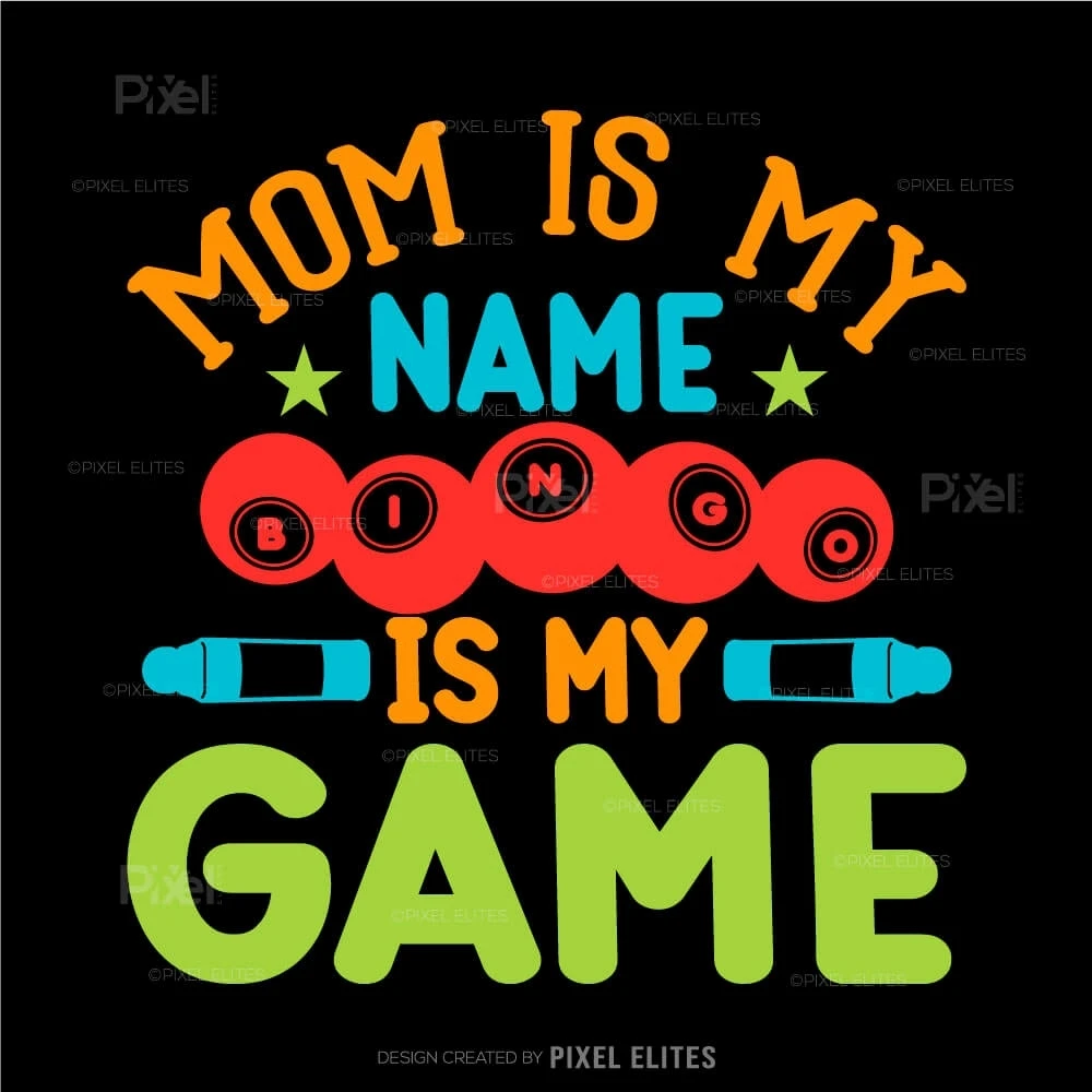 - Mom Is My Name Bingo Is My Game, Fun DIY Shirt Design, Bingo Quote T-Shirt, Custom Mothers Day Gifts, DIY Bingo Crafts, SVG Files for Cricut and Silhouette, Humorous Mom Apparel, Personalized Bingo Clothing, Creative Game Night Projects, Bingo Enthusiast Merchandise