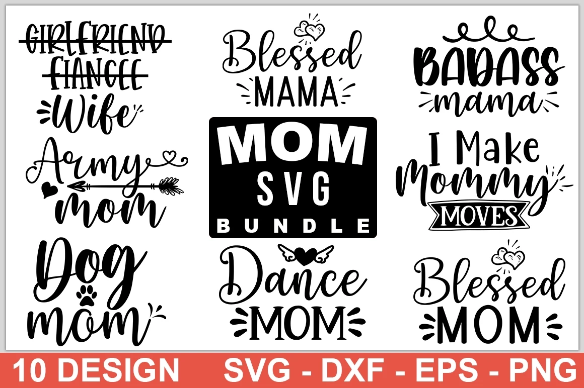 This bundle includes 10 Mom Quotes Designs.
