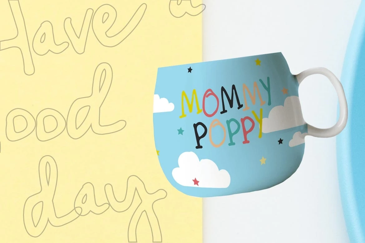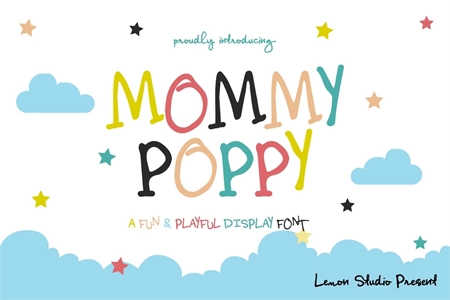 MOMMY POPPY inspired by cute children with colorful in their life. You can apply it to apparel design, branding, headings like a poster, or just for your cute quotes.