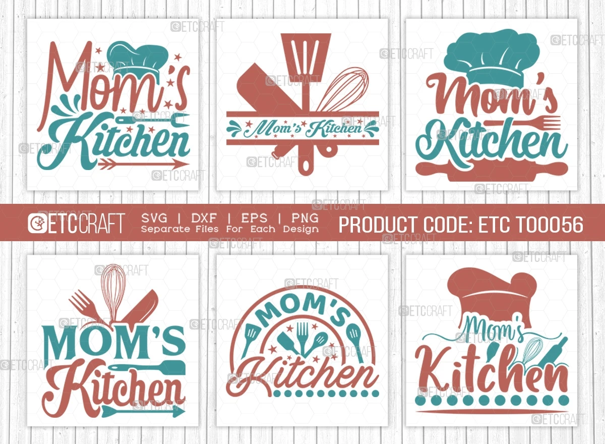 Upgrade your kitchen style with the Mom's Kitchen SVG Bundle and add a dash of culinary charm to your wardrobe and DIY projects. Get yours today and let the world know that Mom's Kitchen is where the magic happens!