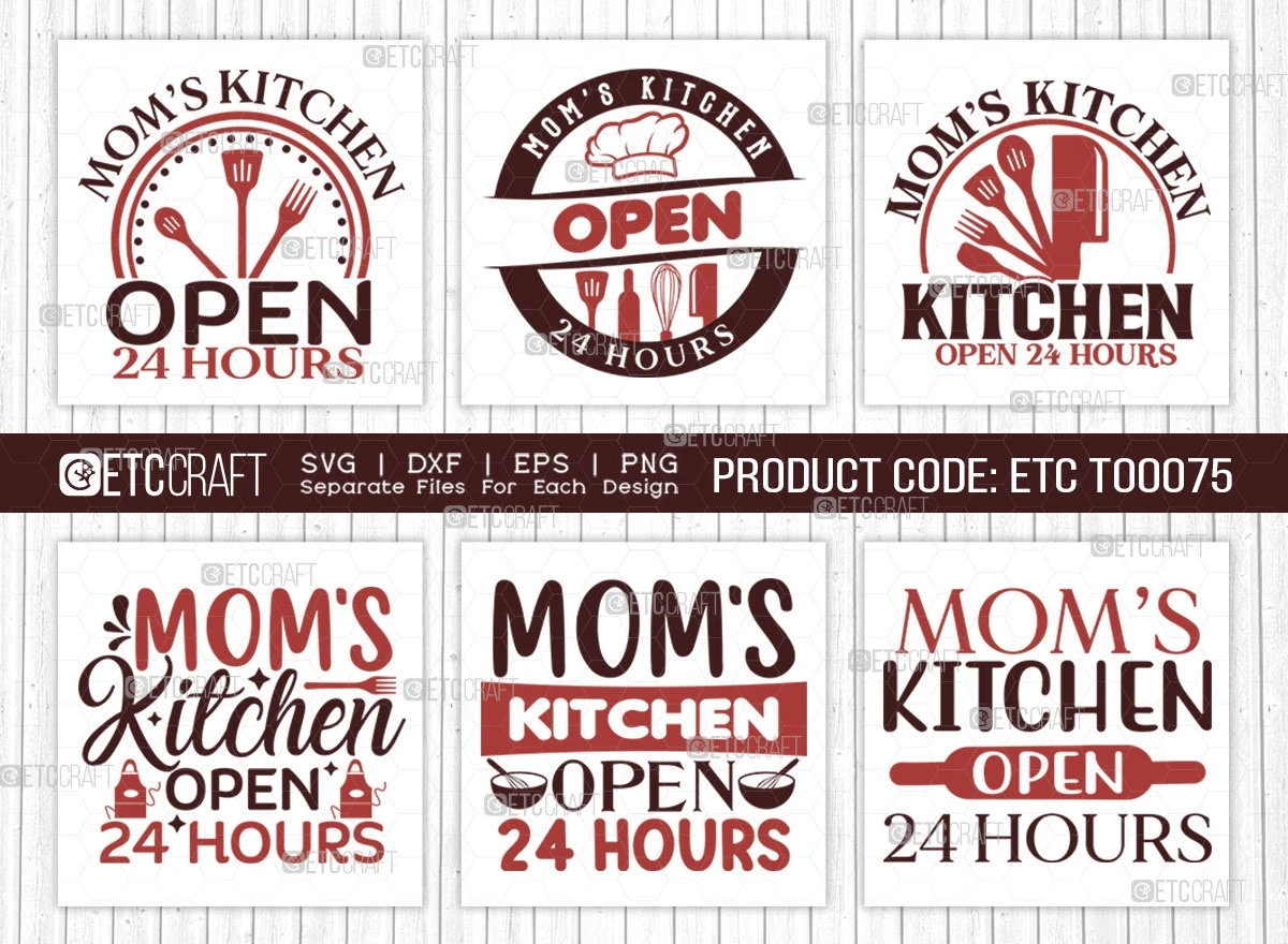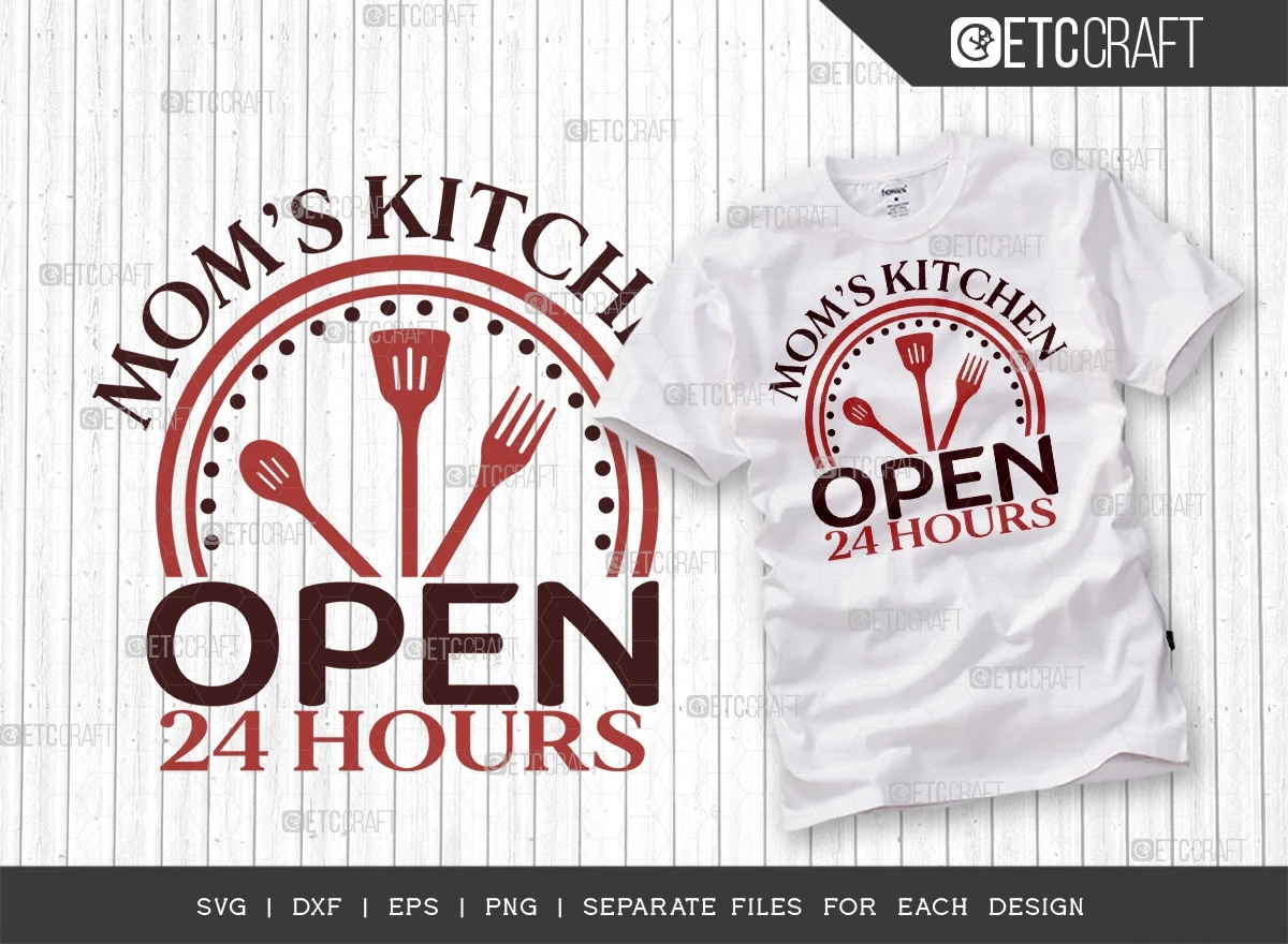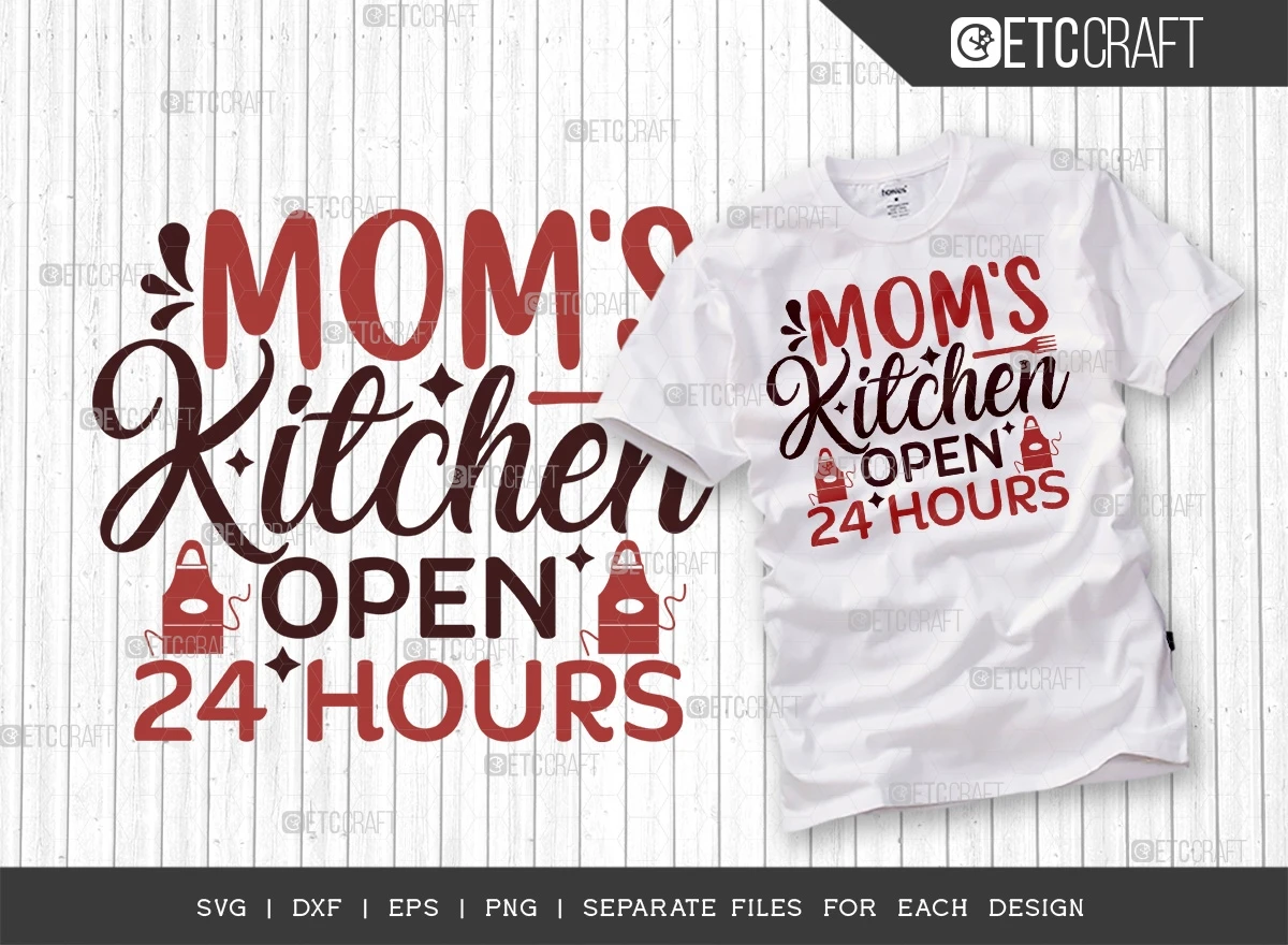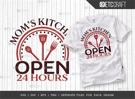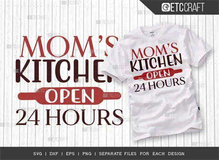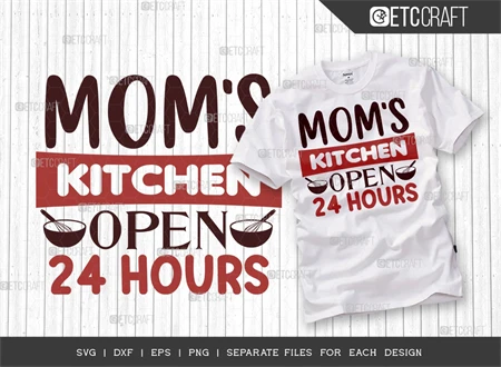 "Moms Kitchen Open 24 Hours" typhography theme.