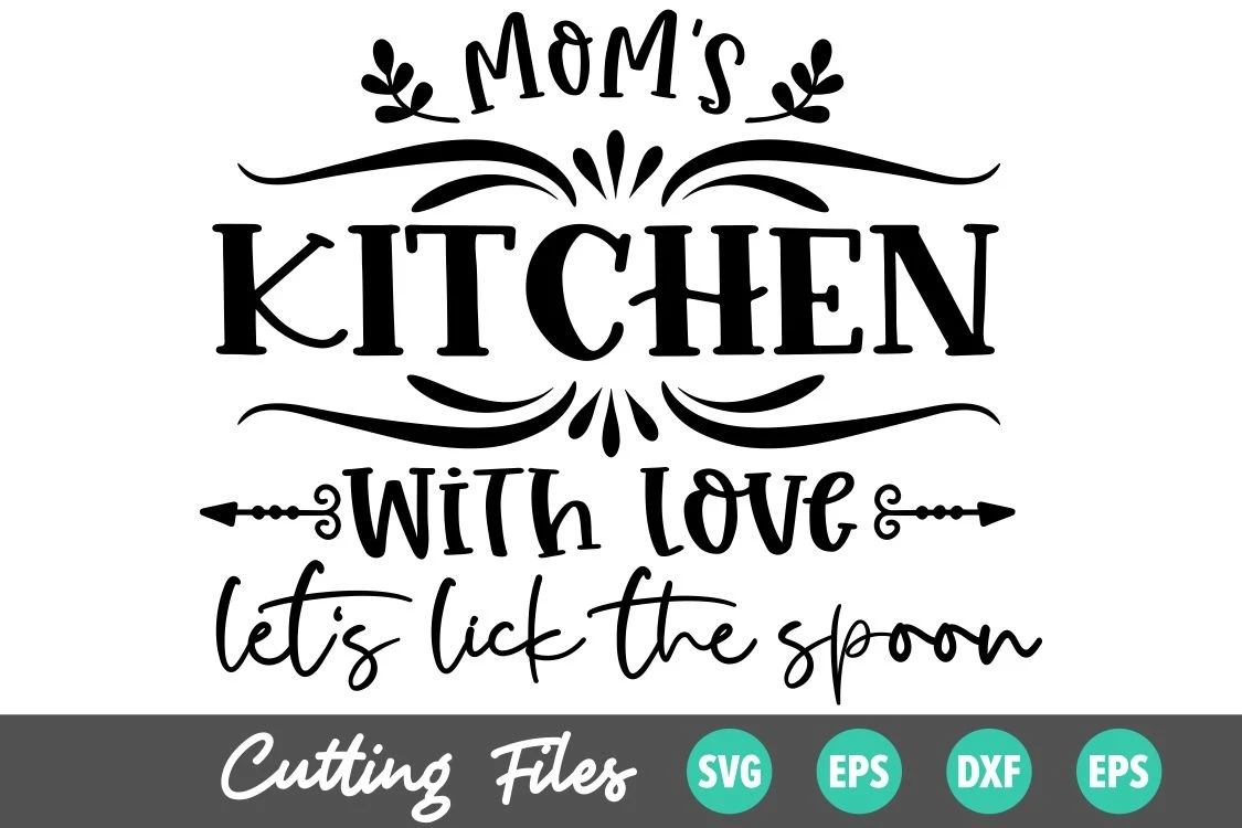 Mom's Kitchen Sign SVG, With Love Svg, Let's Lick The Spoon