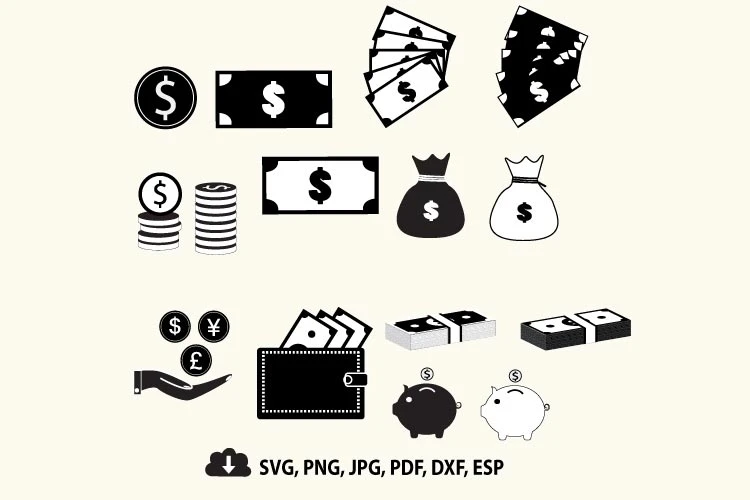 Money Sign Svg, Pig, Money Clipart, Dollar Monogram, Cash Bag Bundle, Wallet Cash, Currency Silhouette, Dollar Coin Symbol ,Money On Hand