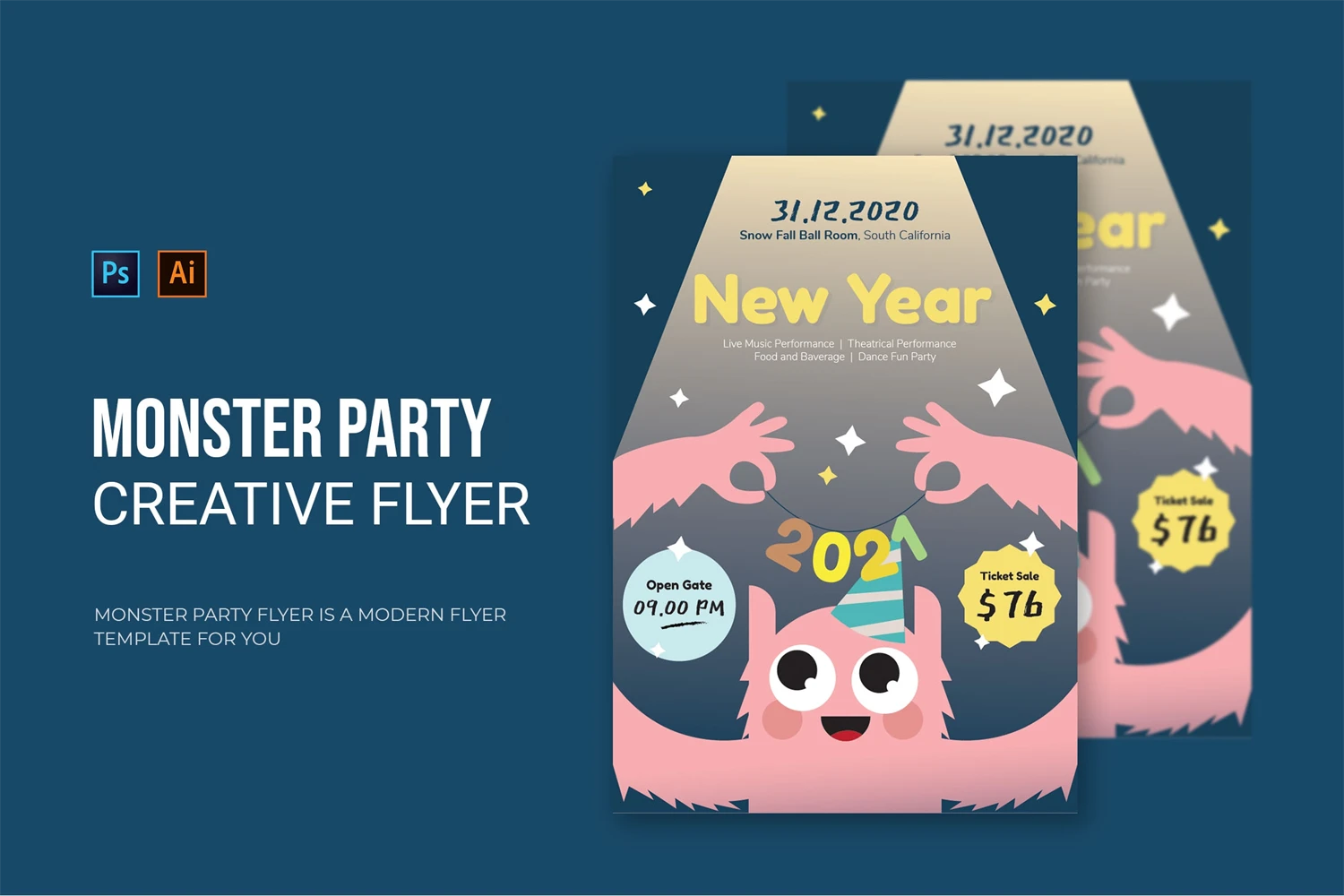 Monster Party - Flyer. This Flyer template is designed for your company's business needs. very clean and elegant, and also easily edited and adjusted to your liking