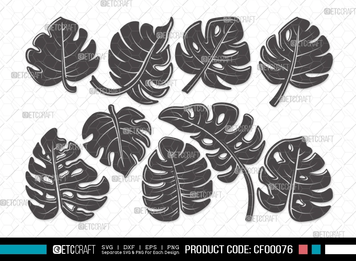 Enhance your creative journey with the "Monstera Leaf Silhouette Green Leaves With Hole" SVG Cut File Bundle. These finely crafted monstera leaf silhouettes bring the beauty of tropical foliage to your fingertips, making your projects truly exceptional.