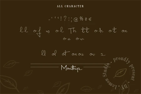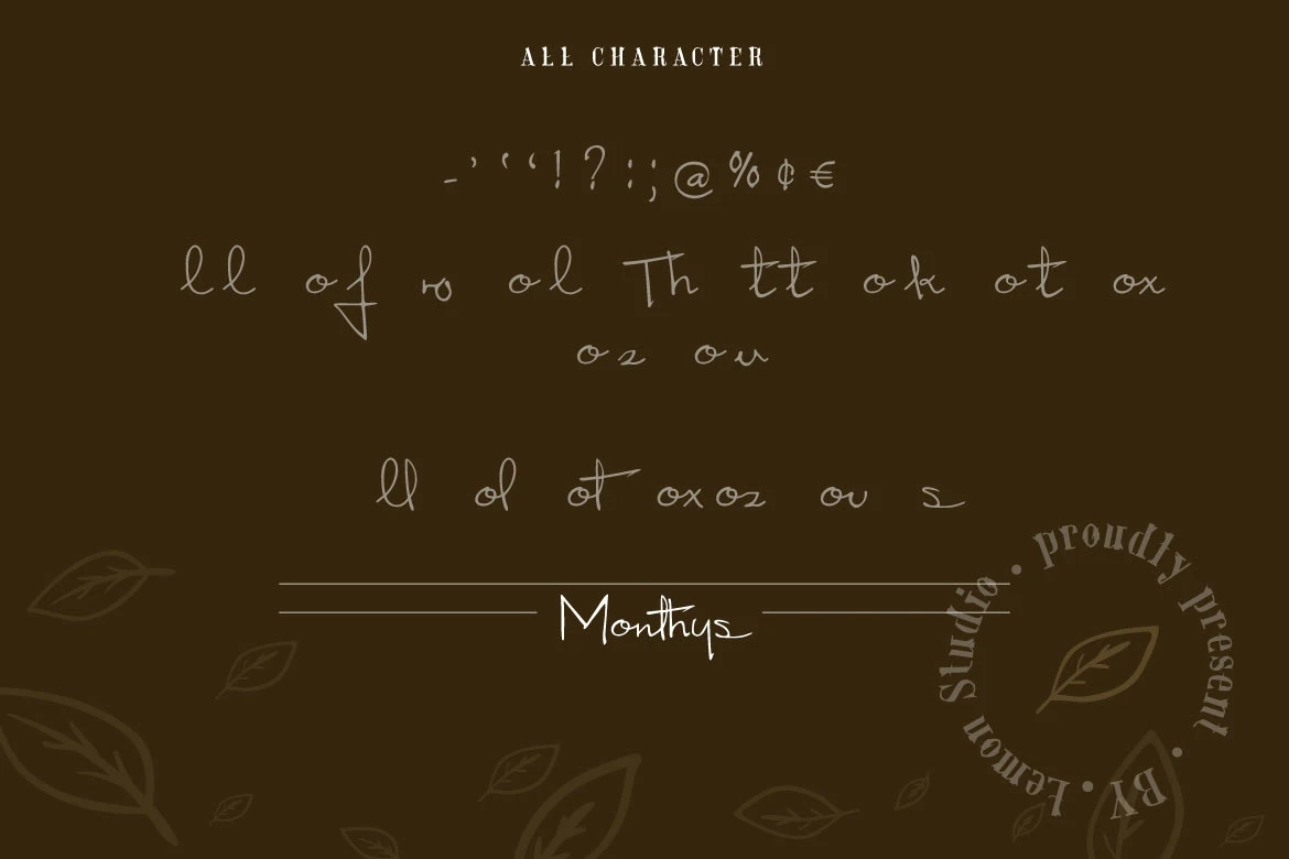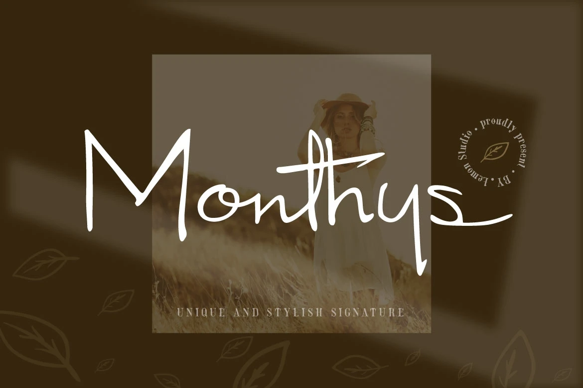 Monthys is a font with an unique signature style. This typeface is suitable when used for writing a brand name, as a logo or naming a product, headings, magazine, packaging, or just for your beautiful artwork and just for a retro quotes.