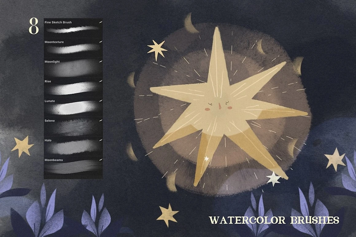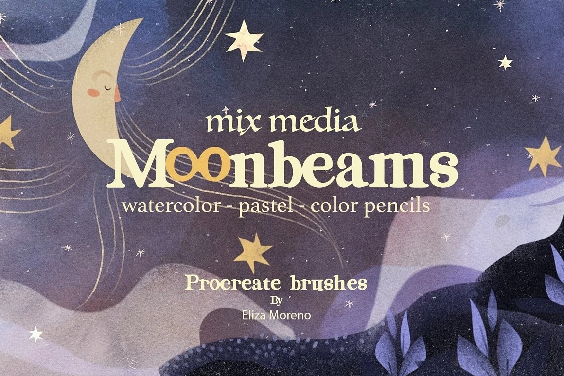 Moonbeams es el primer set y mezcla acuarelas, lpices de colores y pastel.