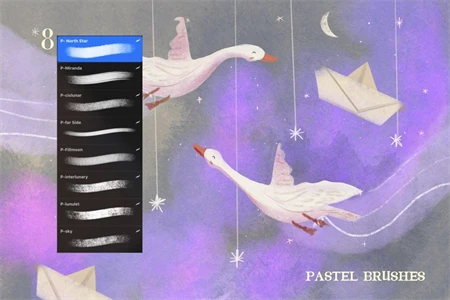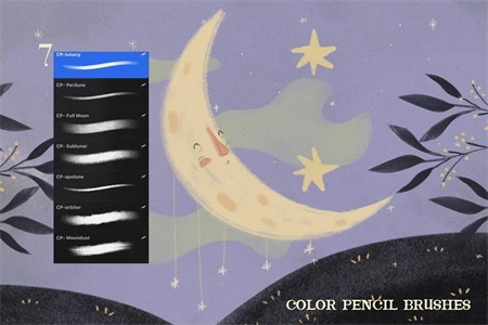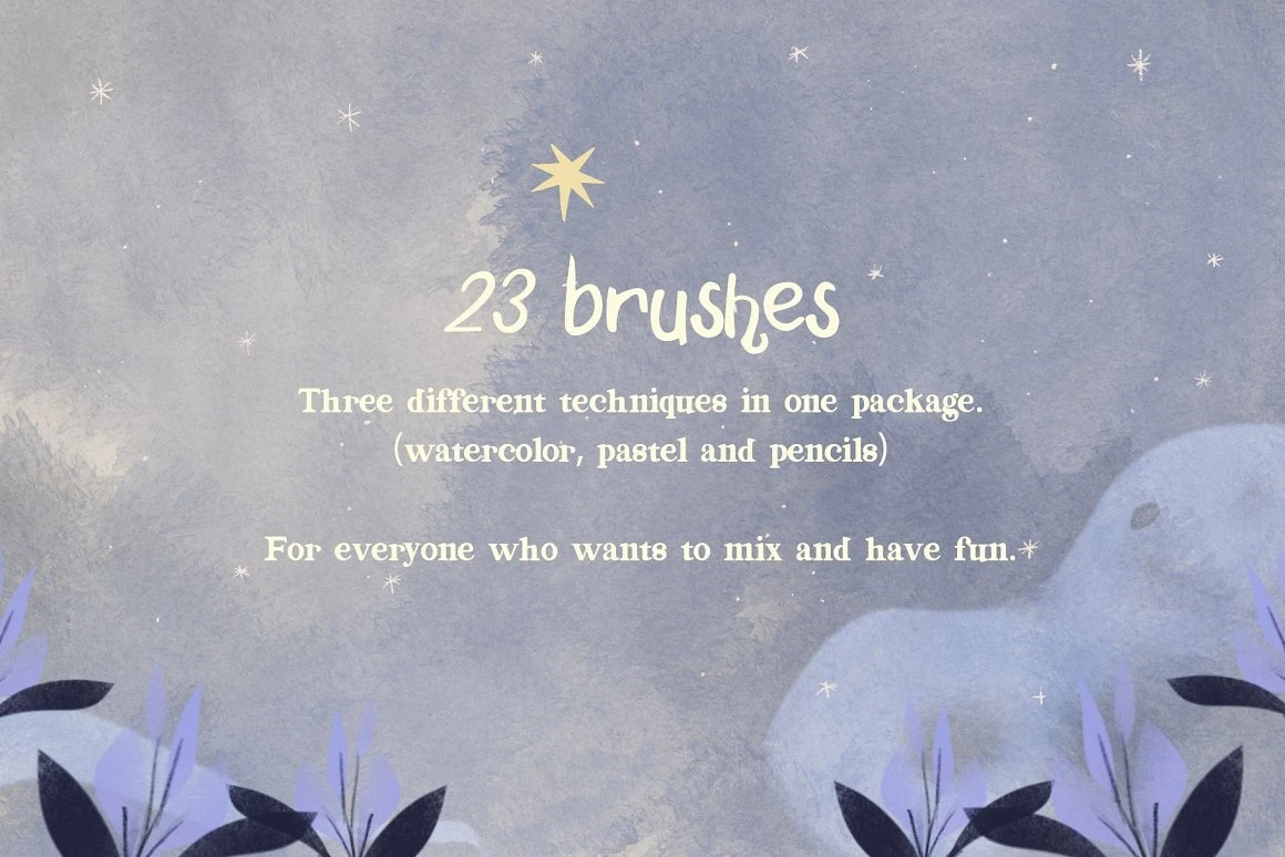 Moonbeams is the first set that integrates watercolor, pencils, and pastel.