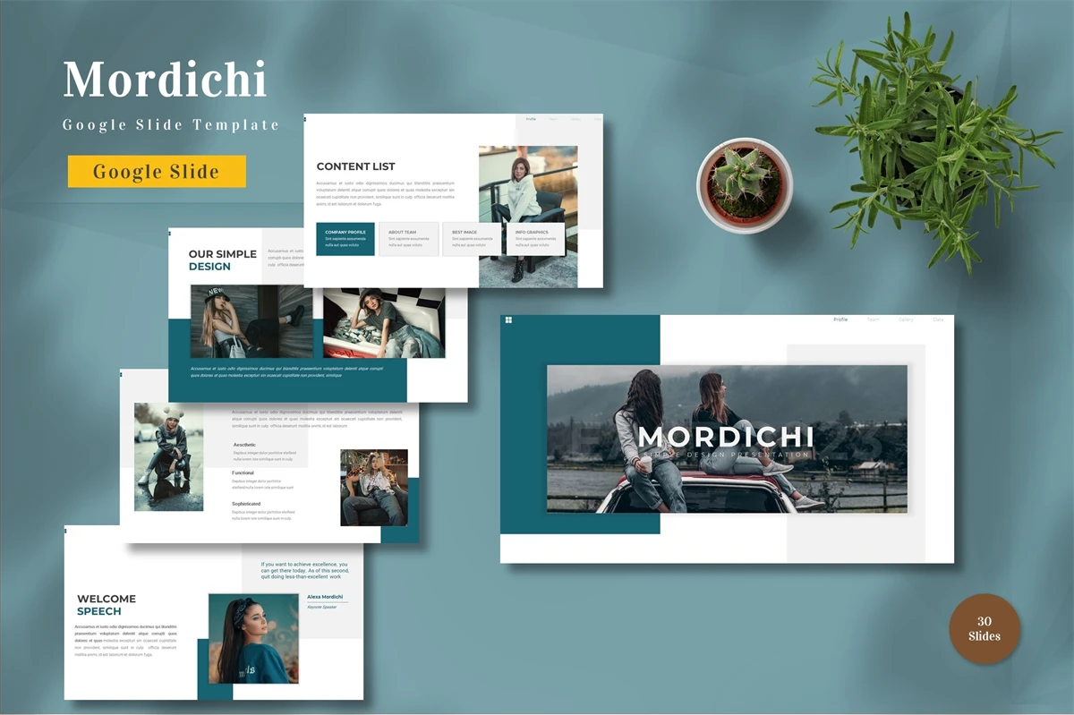 Get it now! **Mordichi - Google Slide Template** for All Business and Personal Needs All elements on this template are editable; input your content, replace your image with a placeholder, change the color, and all presentations include an animated slide to present your slides.