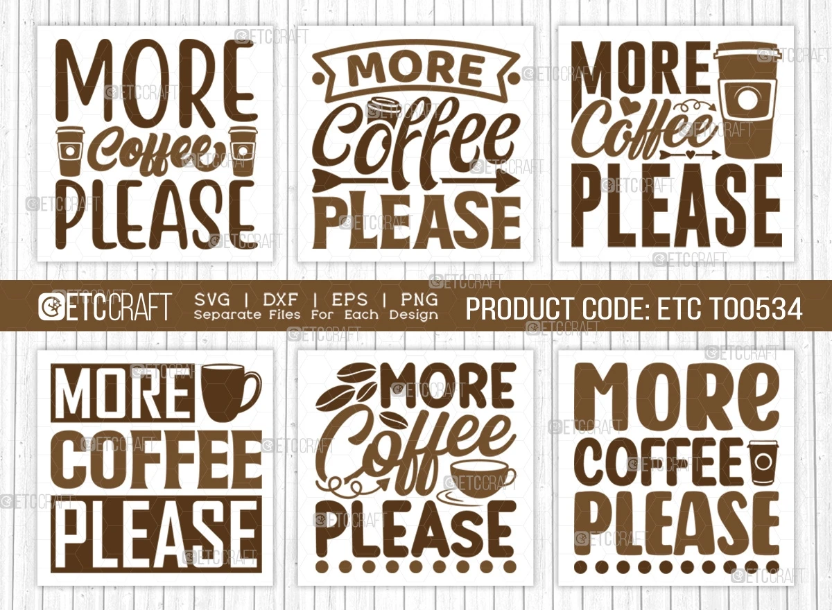 Q: Can I use this bundle for commercial purposes? A: Absolutely! Our More Coffee Please SVG Bundle is suitable for personal and commercial use.